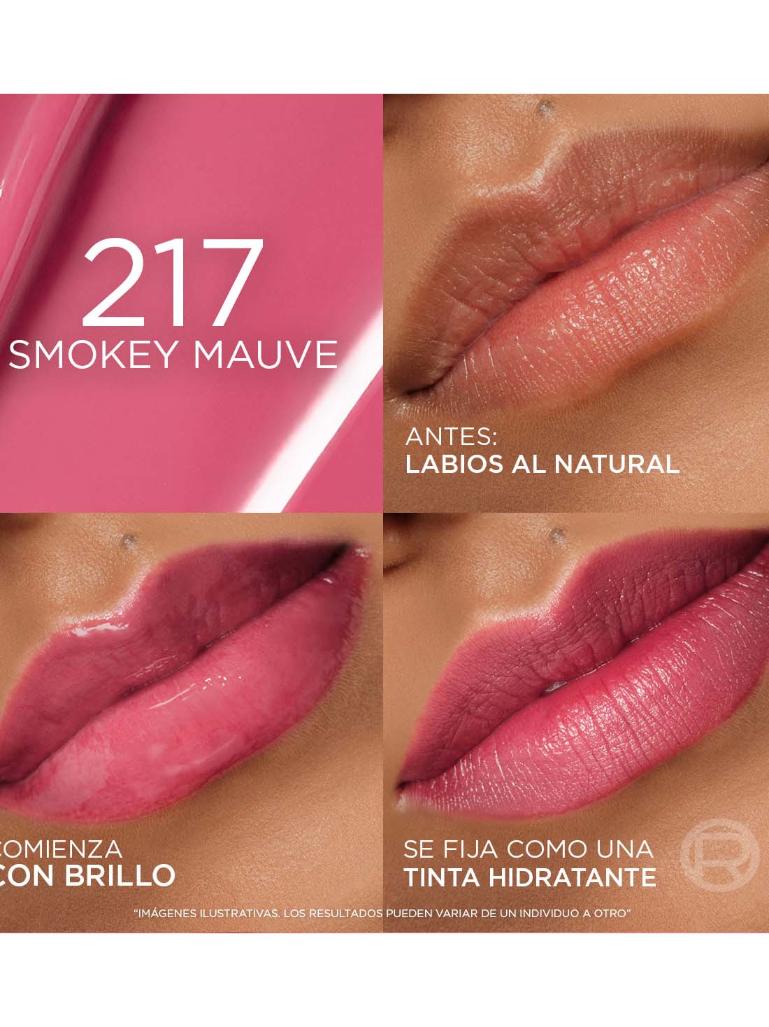 - Acabado inicial glossy y brilloso que a lo largo del día deja los labios pigmentados e hidratados