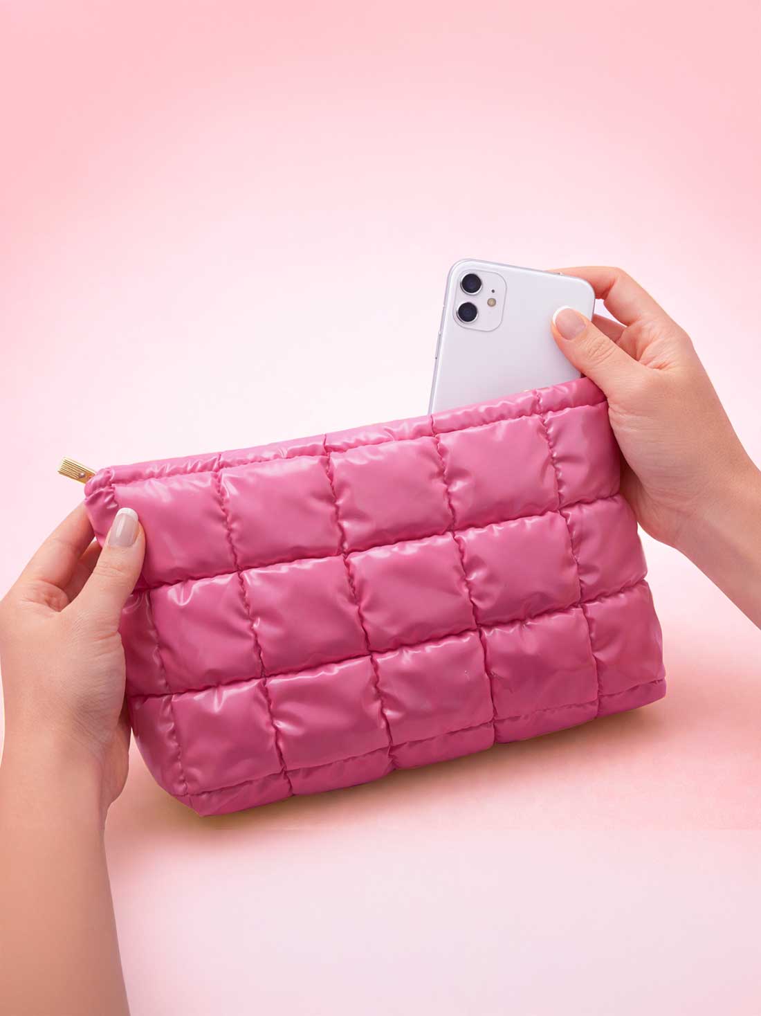 Cute por fuera, súper práctica por dentro. Cosmetiquera acolchada espaciosa y ligera para llevar tu make up favorito a todos lados