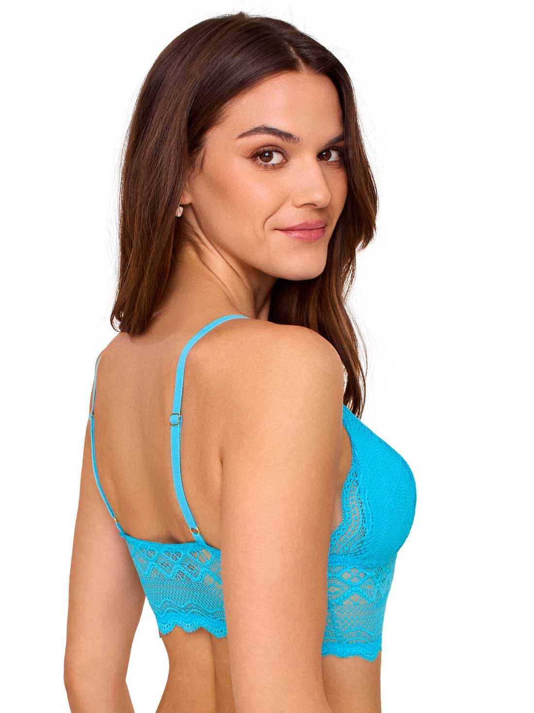 Este bra te acompaña con suavidad y estilo en cada movimiento. Su escote en U con abertura agrega un detalle femenino, mientras que las copas removibles te dan la libertad de elegir cómo usarlo. El encaje delicado aporta ese toque romántico.