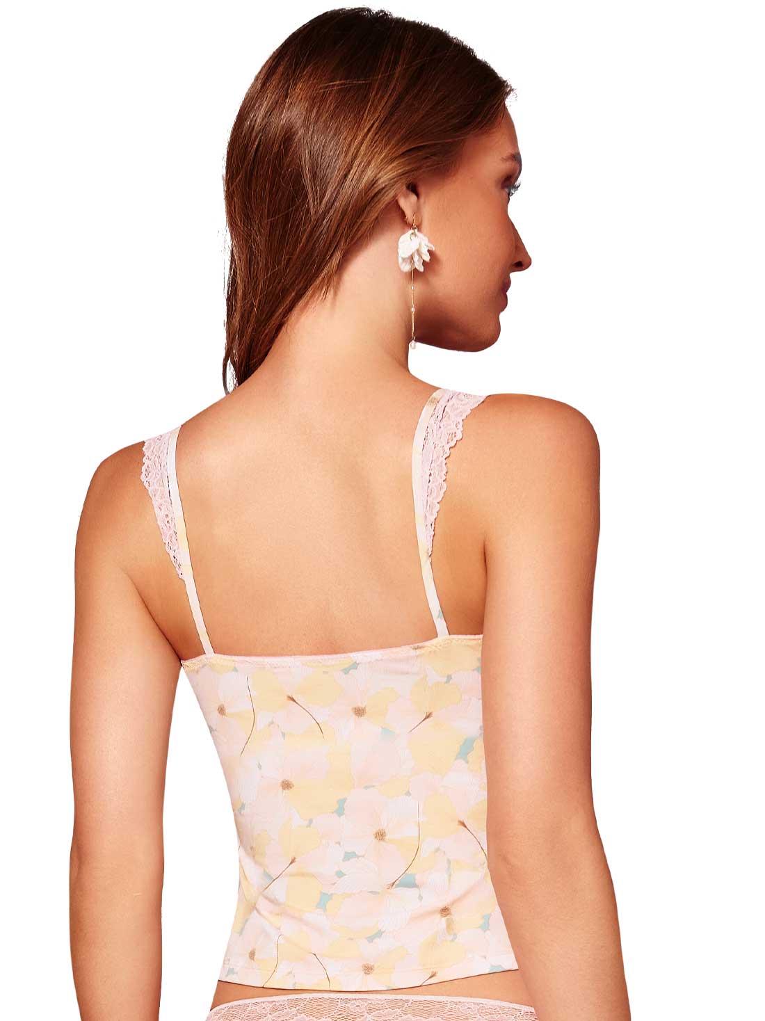- Delicado encaje floral en tirantes y escote