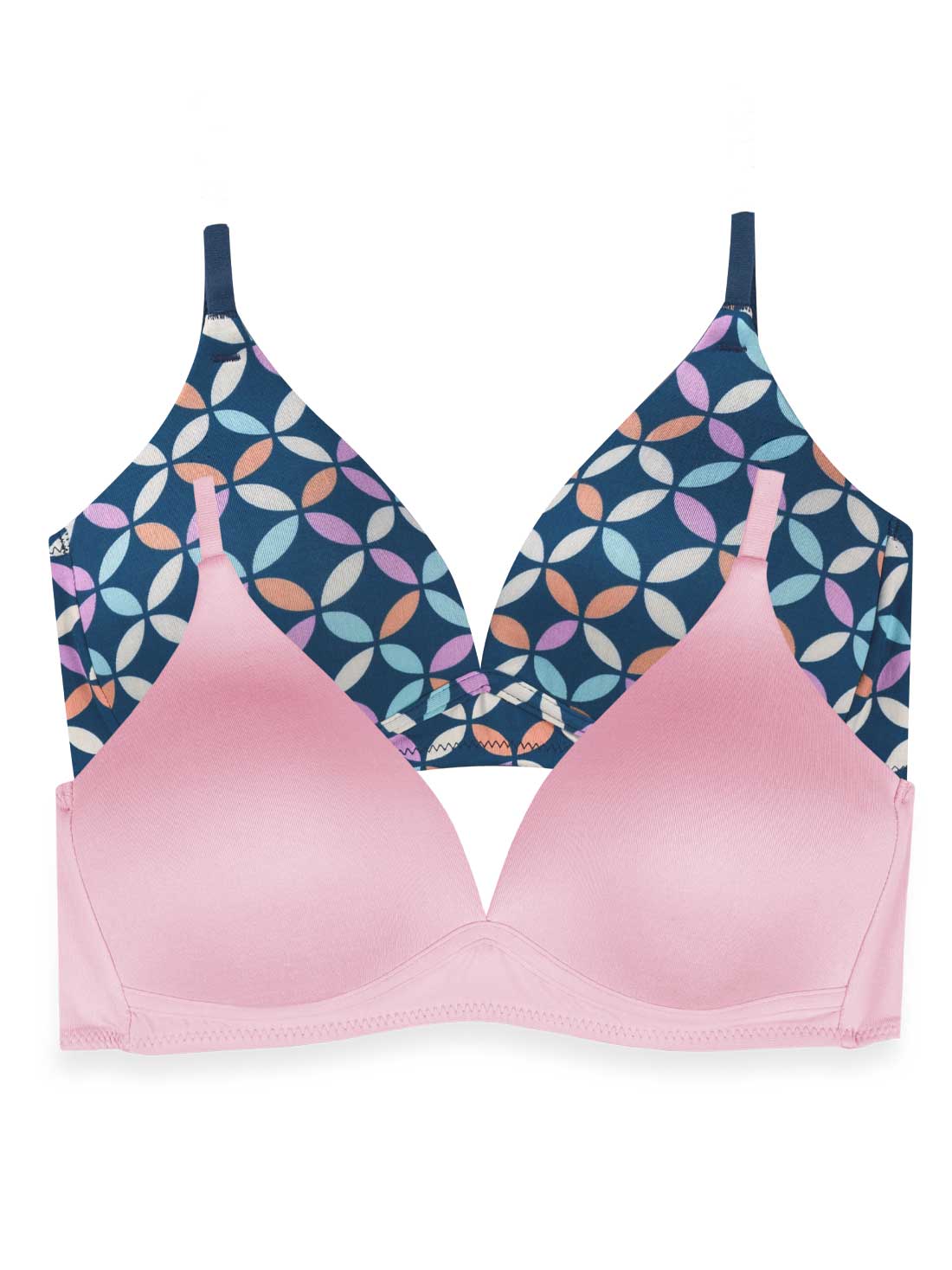 Este pack incluye 2 bras sin varilla con copa triangular que mantiene la forma natural de tu busto. Sus tirantes afelpados ofrecen suavidad y comodidad todo el día.