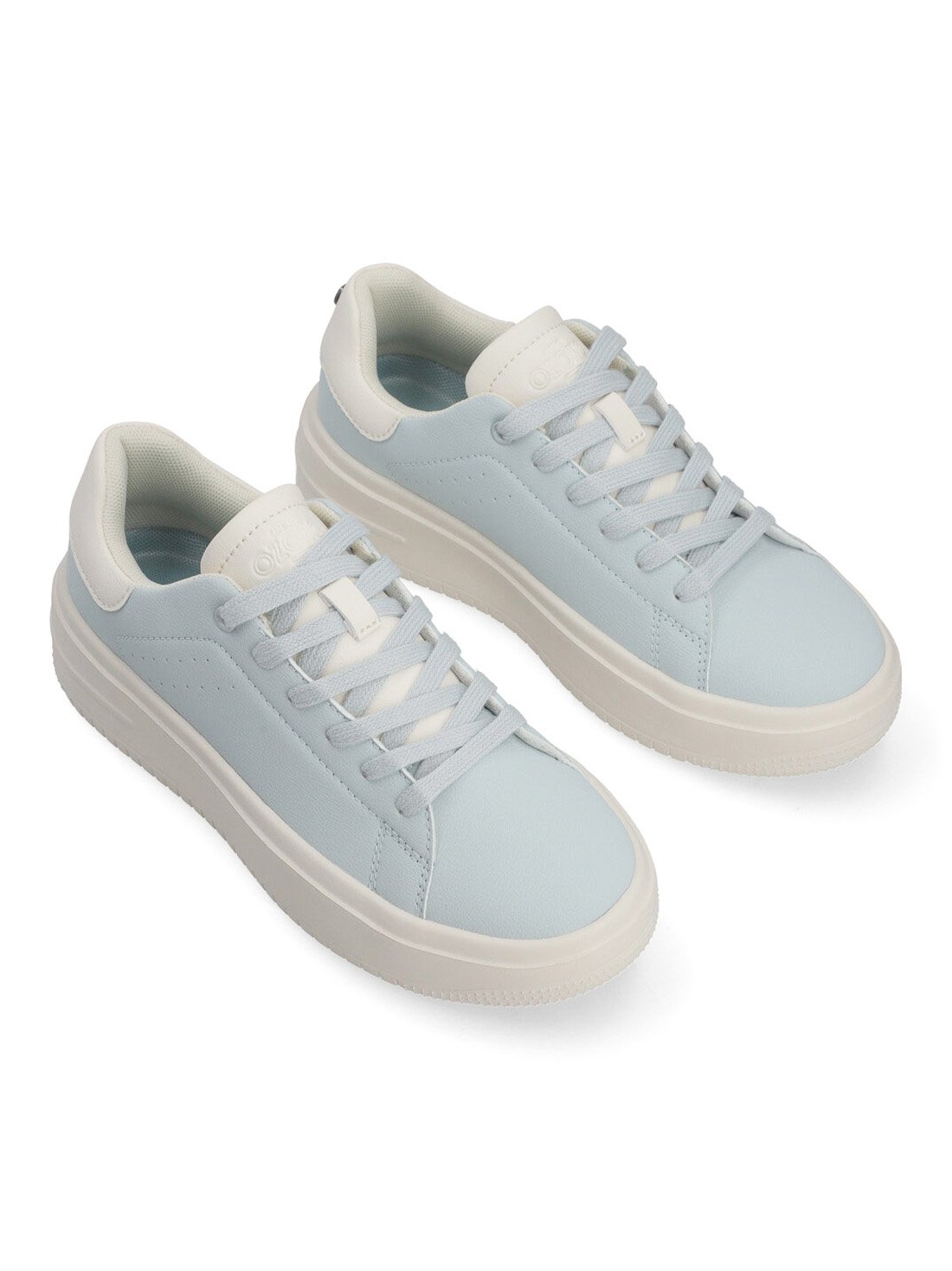 Estos tenis en tono azul pastel con suela blanca elevan cualquier look con un estilo fresco y minimalista. Su diseño de líneas limpias y materiales suaves aporta un toque moderno.