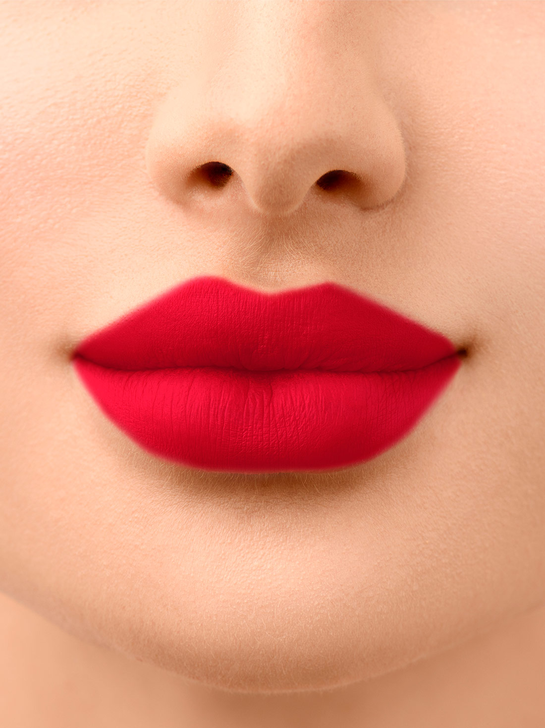 - Labial liquido de tonos intenso, con acabado matte aterciopelado