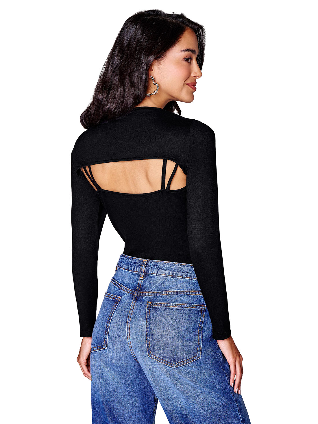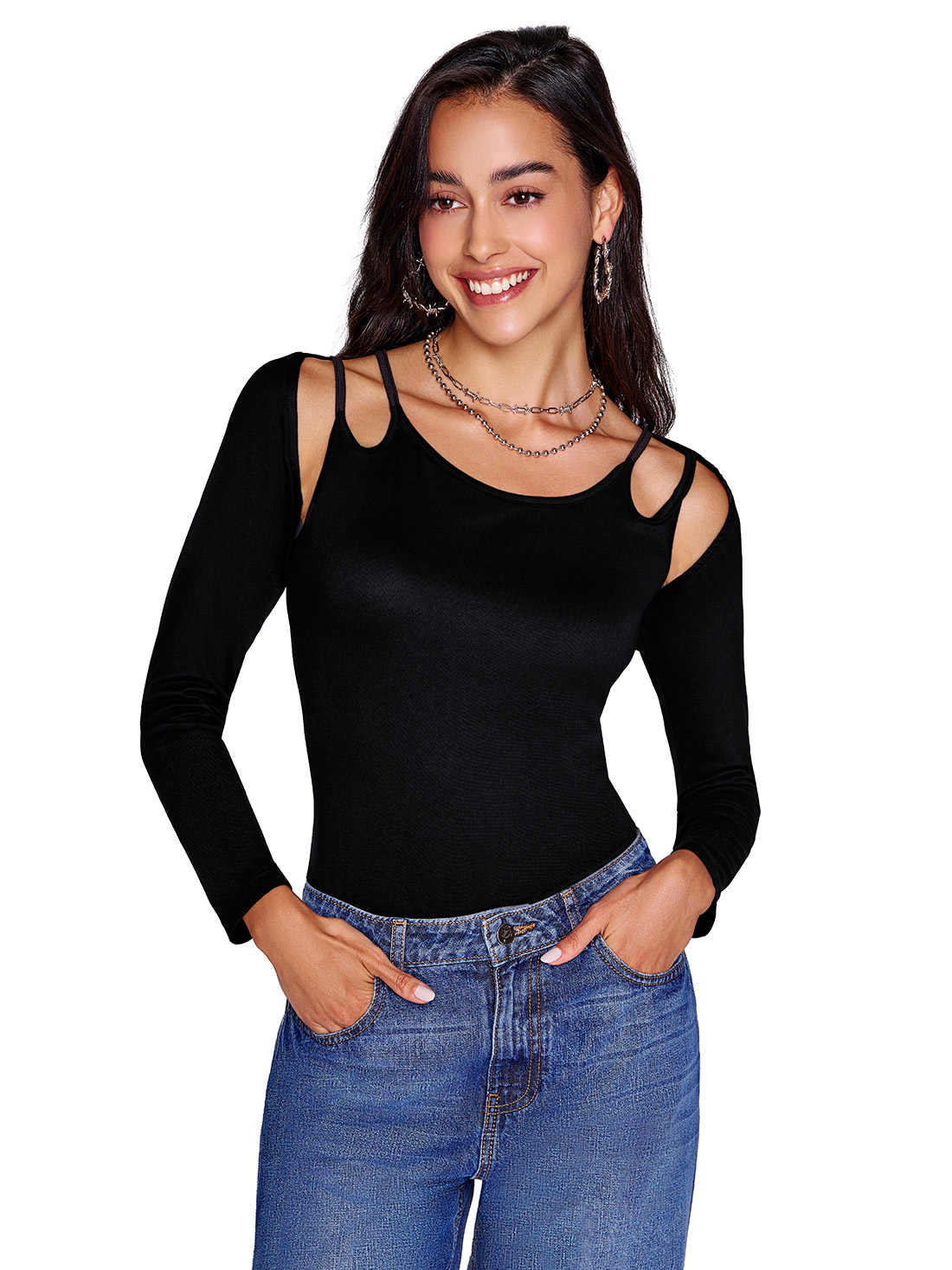 Este top de manga larga con aberturas es la definición de elegancia. Con doble tirante para un ajuste perfecto y un largo favorecedor que estiliza tu figura, es la pieza ideal para cualquier ocasión.