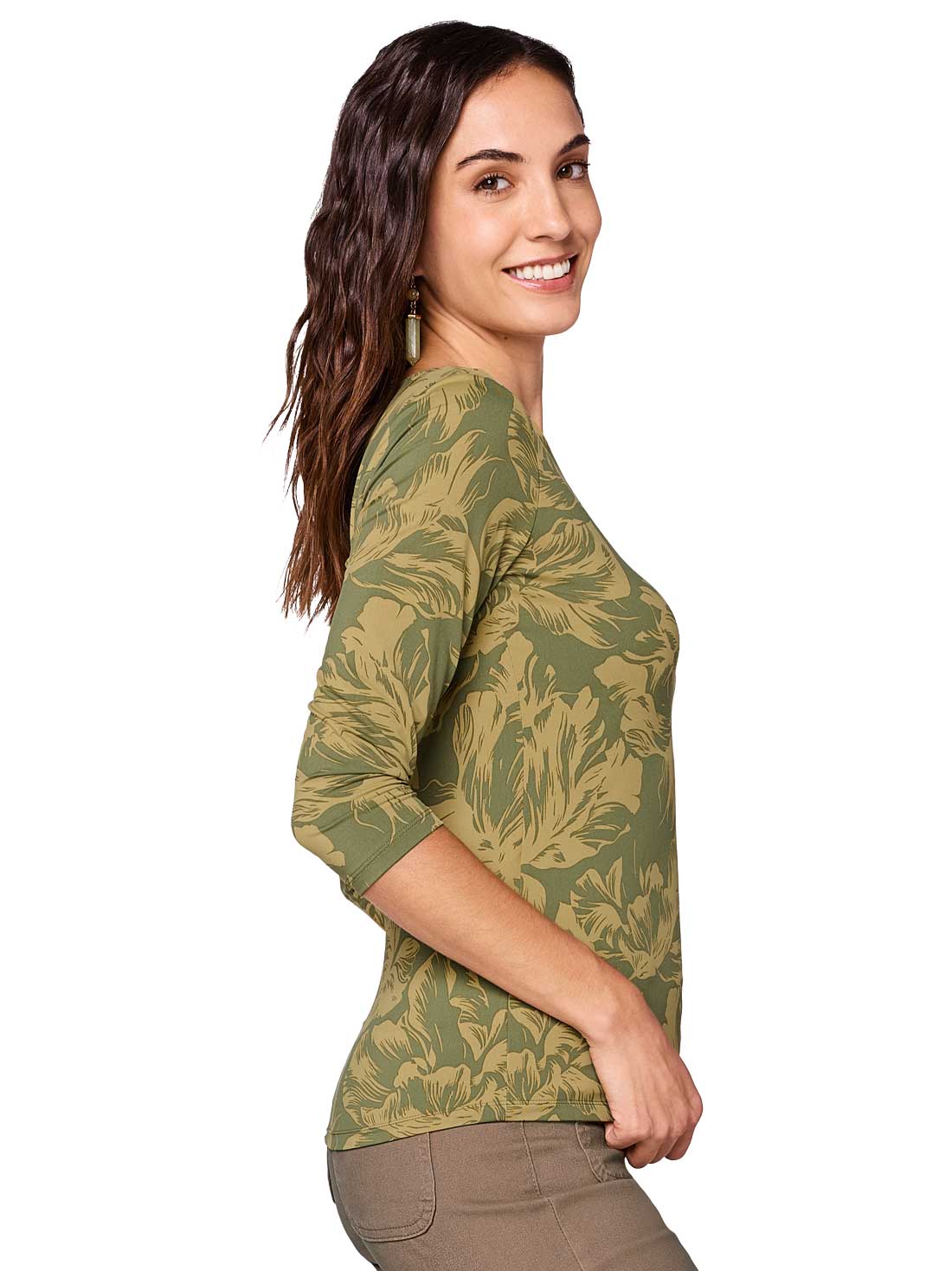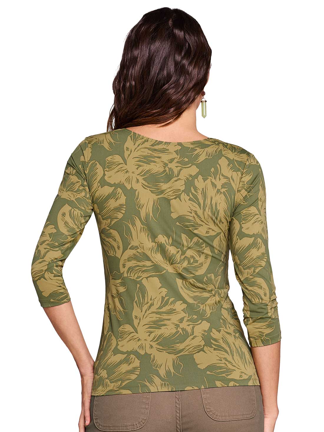 Esta blusa con manga 3/4 es perfecta para acompañarte en cualquier ocasión. Su doble tela al frente te da seguridad y el escote redondo le suma un toque clásico que combina con todo. Ideal para looks casuales o más formales.
