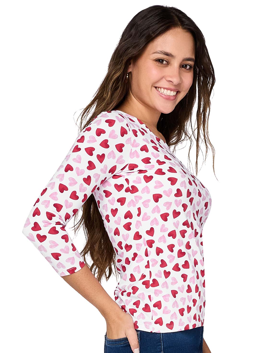 Esta blusa con manga 3/4 es perfecta para acompañarte en cualquier ocasión. Su doble tela al frente te da seguridad y el escote redondo le suma un toque clásico que combina con todo. Ideal para looks casuales o más formales.