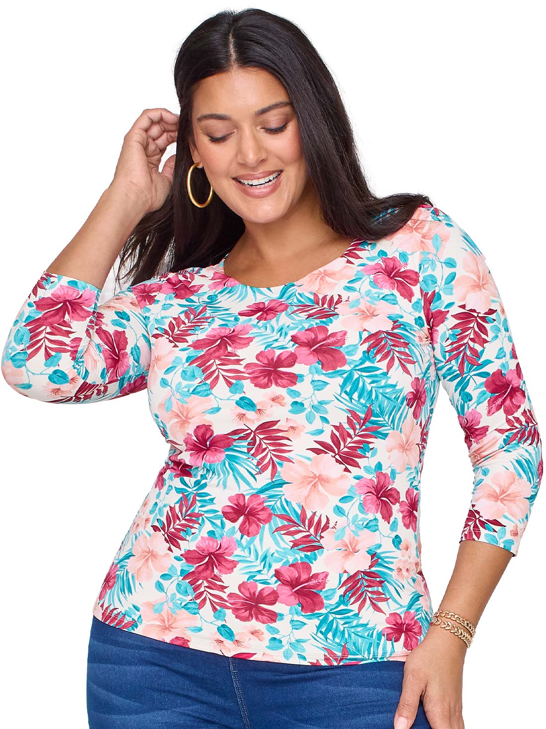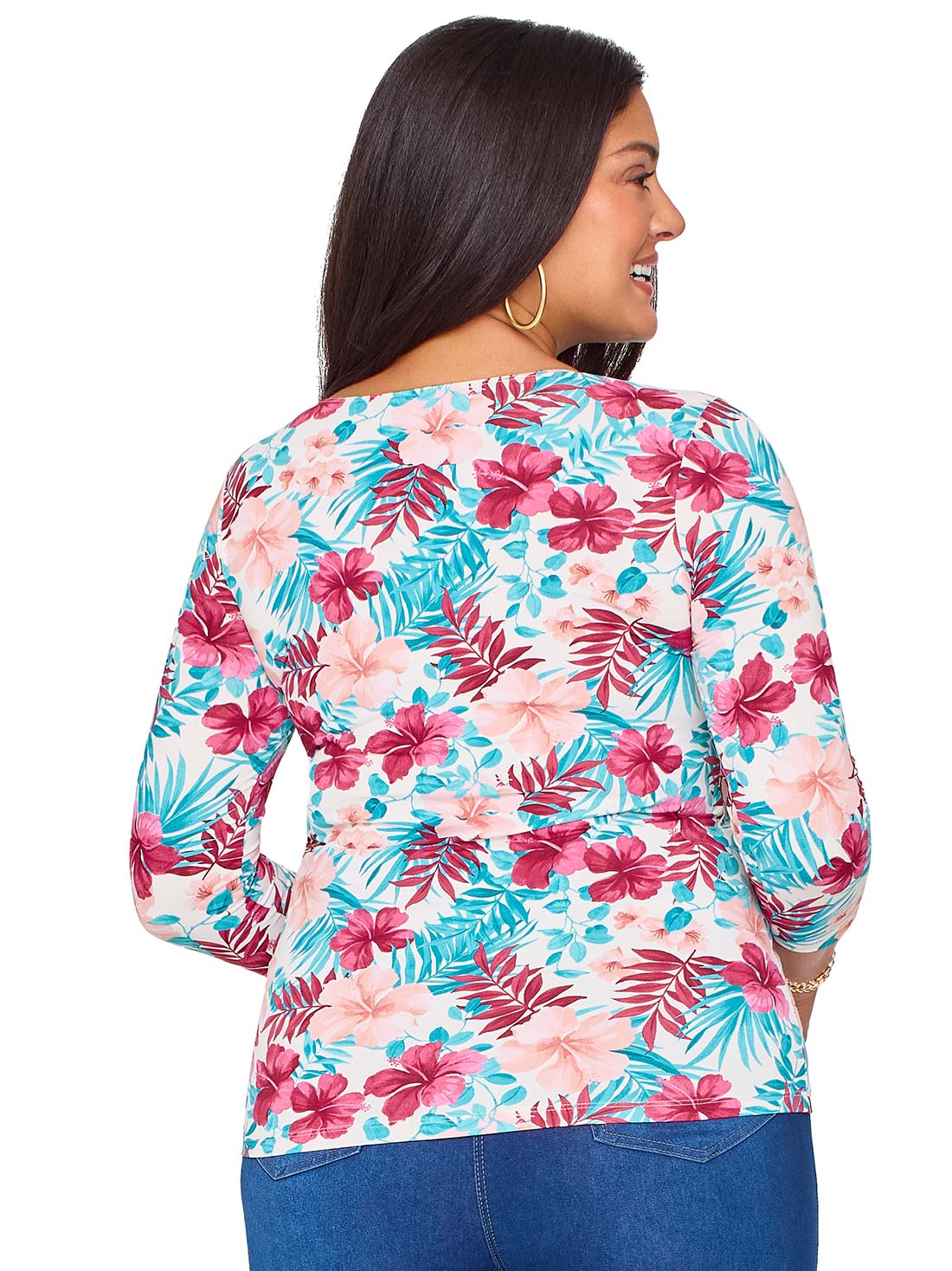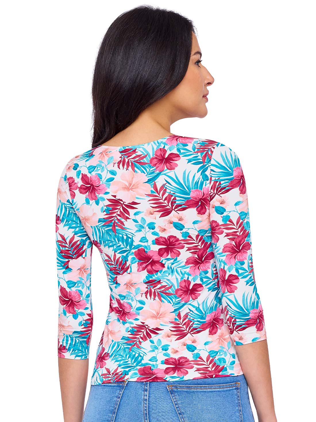 Esta blusa con manga 3/4 es perfecta para acompañarte en cualquier ocasión. Su doble tela al frente te da seguridad y el escote redondo le suma un toque clásico que combina con todo. Ideal para looks casuales o más formales.