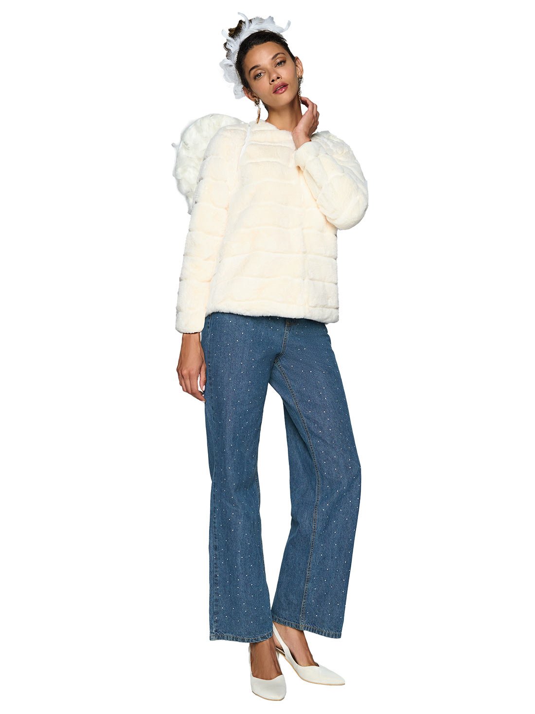 Este abrigo de peluche te da un toque elegante y cálido. Su diseño de franjas y el pelo sintético crean una textura suave y moderna. Los broches al centro y el forro interno lo hacen funcional. ¡Perfecto para destacar en días fríos!