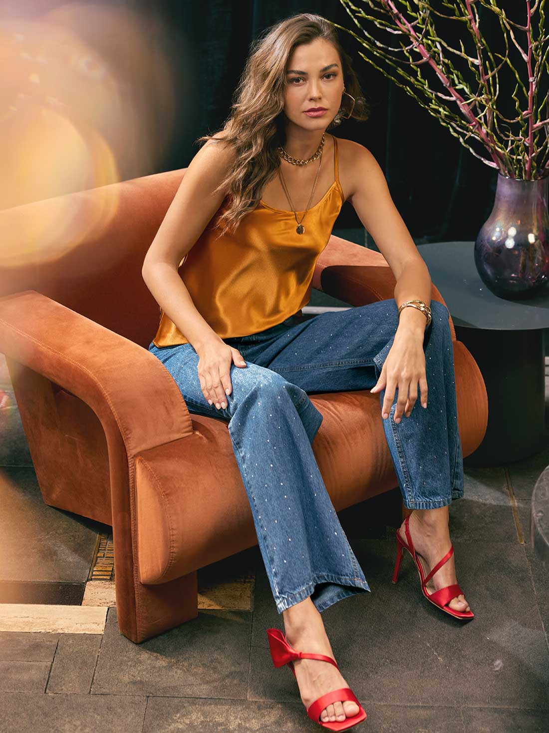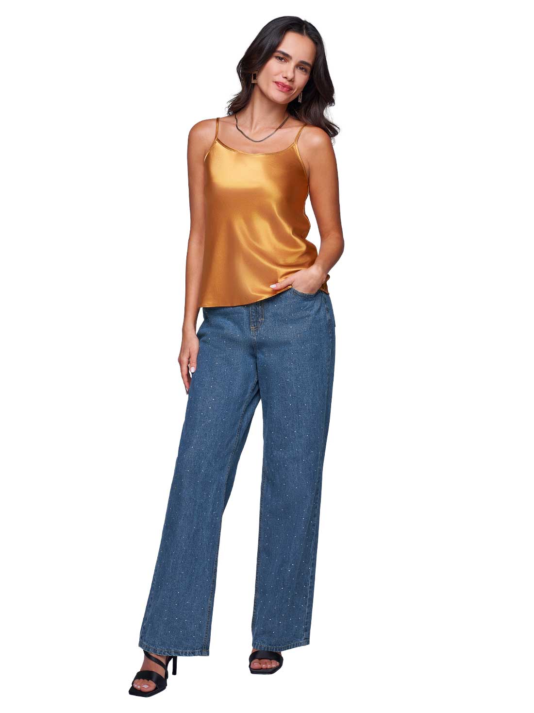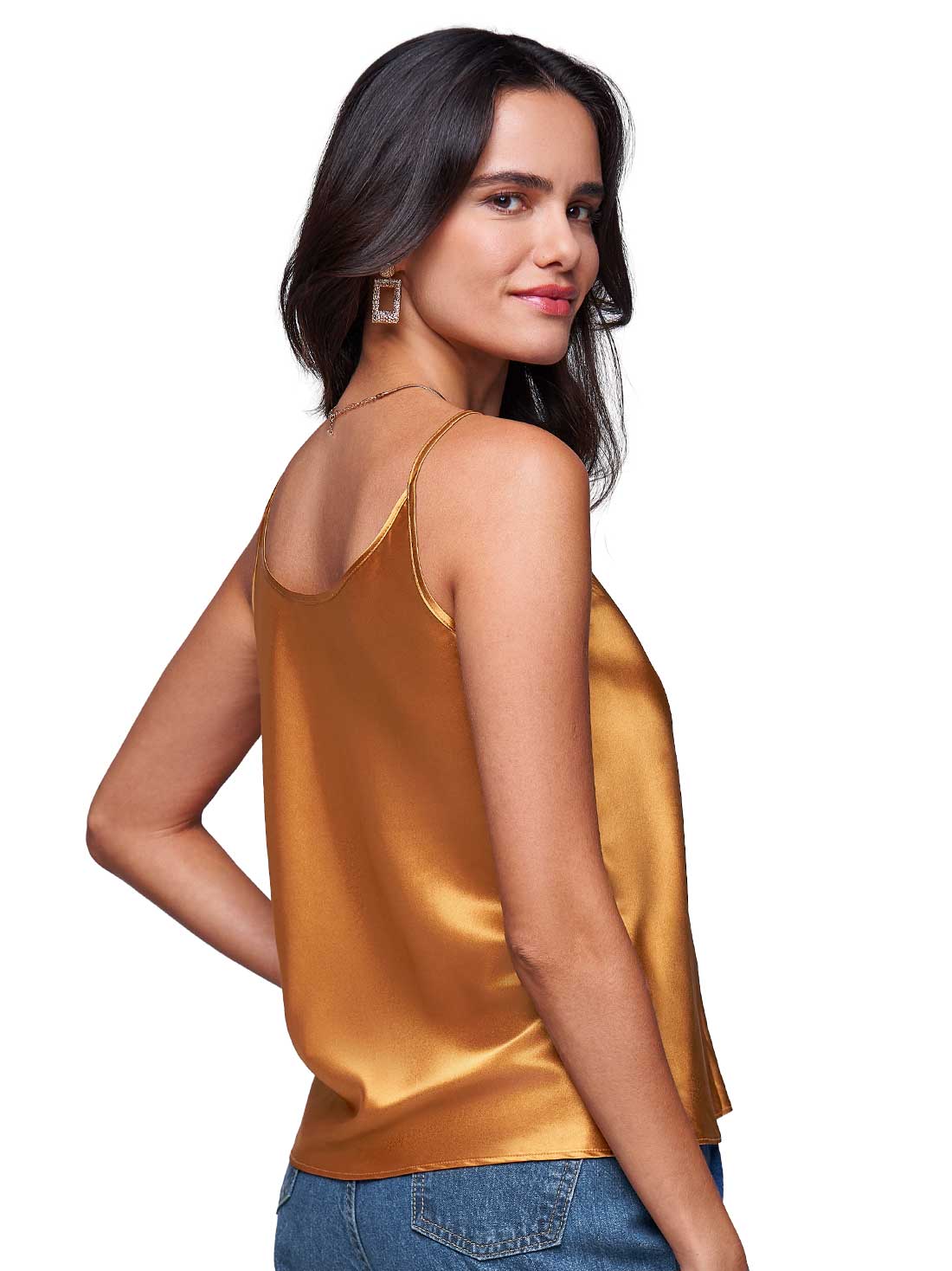 Blusa de satin elegante con tejido suave y brillante que aporta sofisticación a cualquier look. Tirantes fijos para un ajuste seguro y silueta recta que estiliza tu figura. Perfecta para cenas, eventos especiales o para elevar tu outfit diario.
