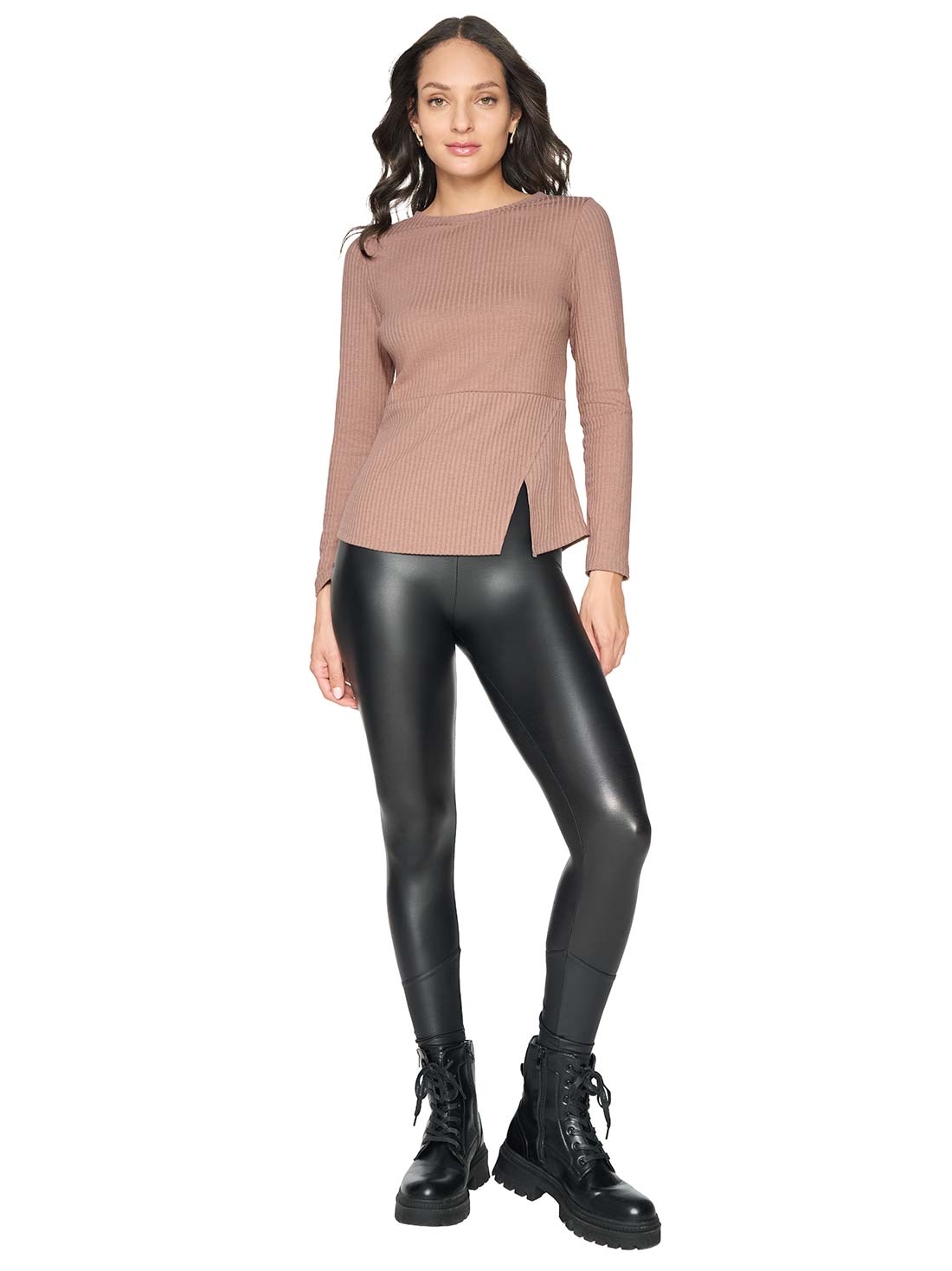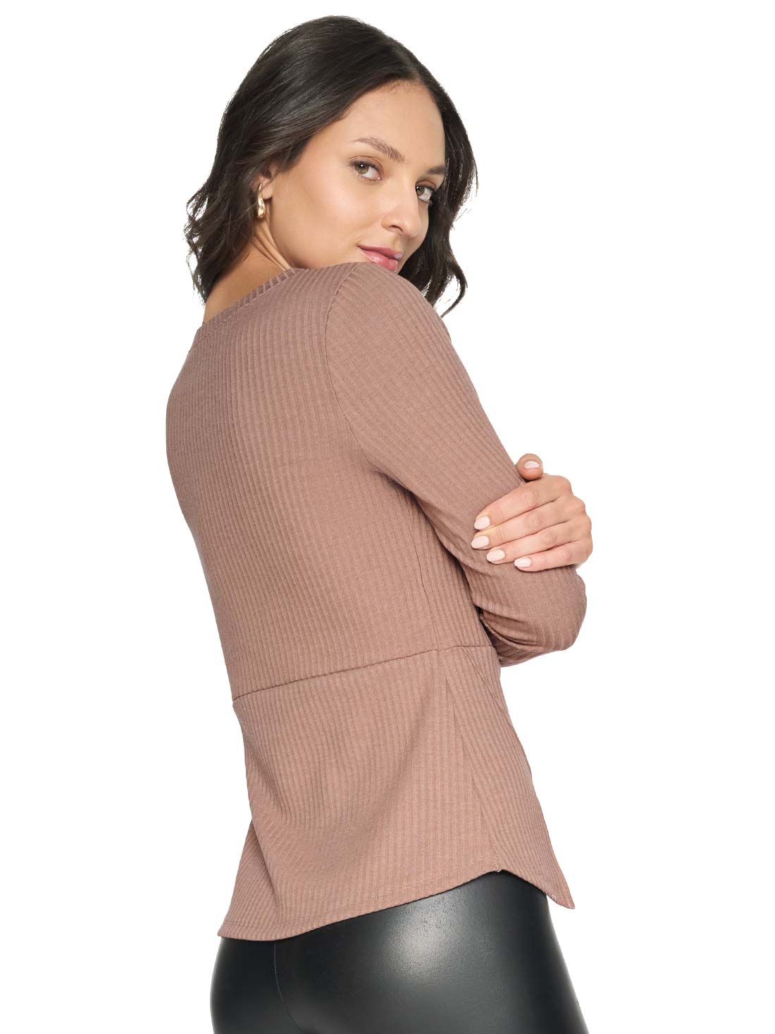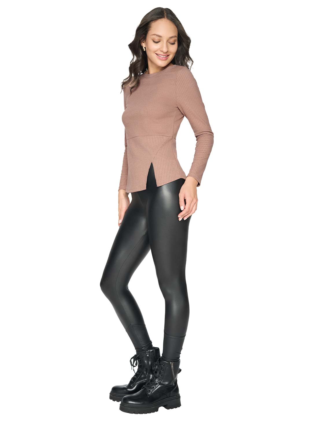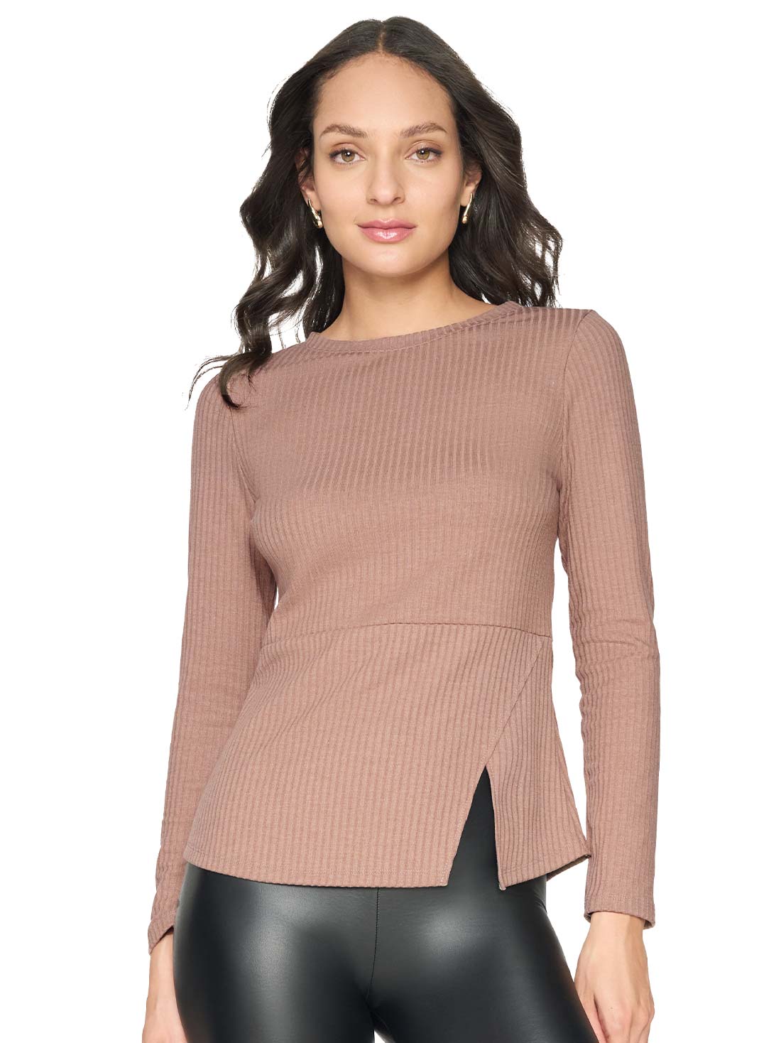 Esta blusa con abertura a los lados es ideal para un look casual con estilo. Su silueta acinturada y largo a la cadera favorecen tu figura, mientras el escote redondo y la manga larga la hacen versátil. ¡Un toque moderno para tu día!