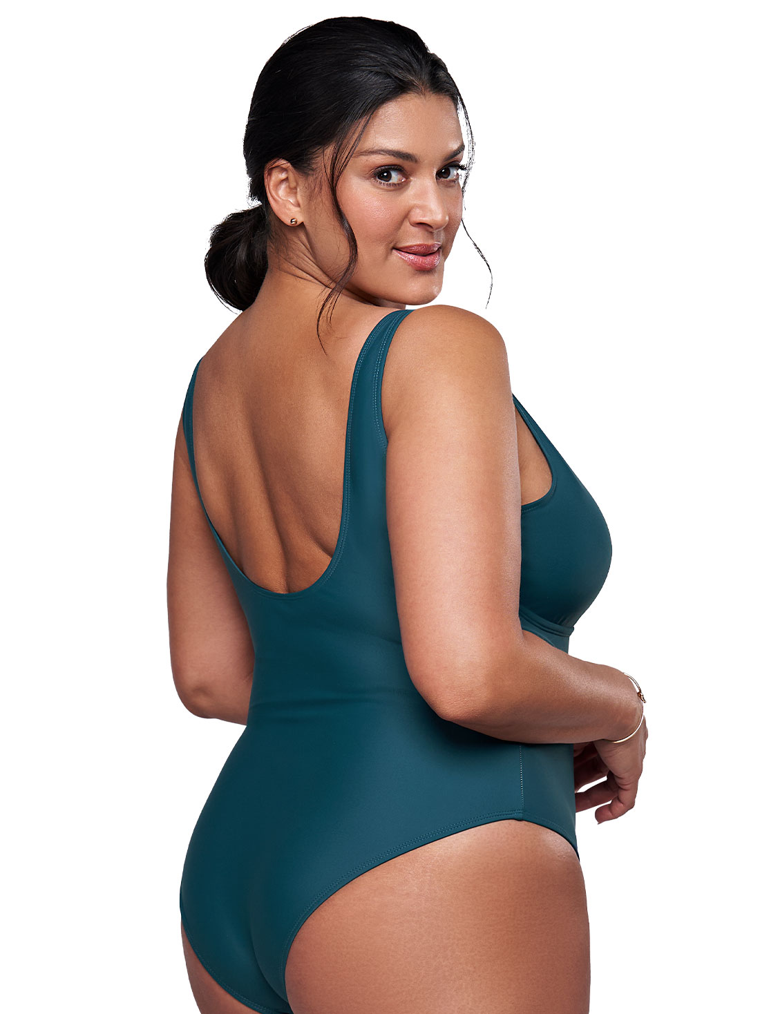 Resalta tu figura con este traje de baño completo para mujer. Cuenta con copas internas removibles, escote con jareta y espalda baja que estiliza. Su tejido de secado rápido lo convierte en tu mejor aliado para disfrutar del sol con confianza y frescura.