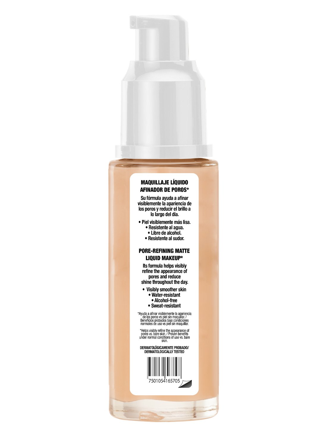 - Maquillaje liquido afinador de poros, ayuda a controlar la grasa y dejando la piel visiblemente más lisa