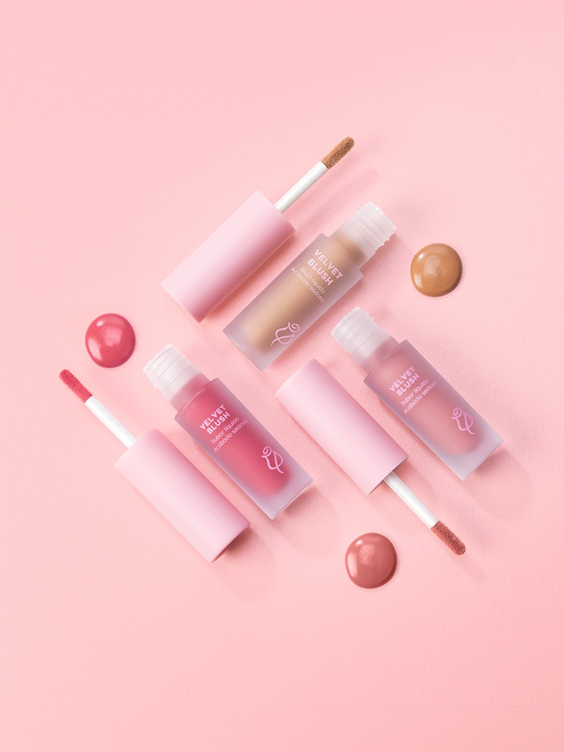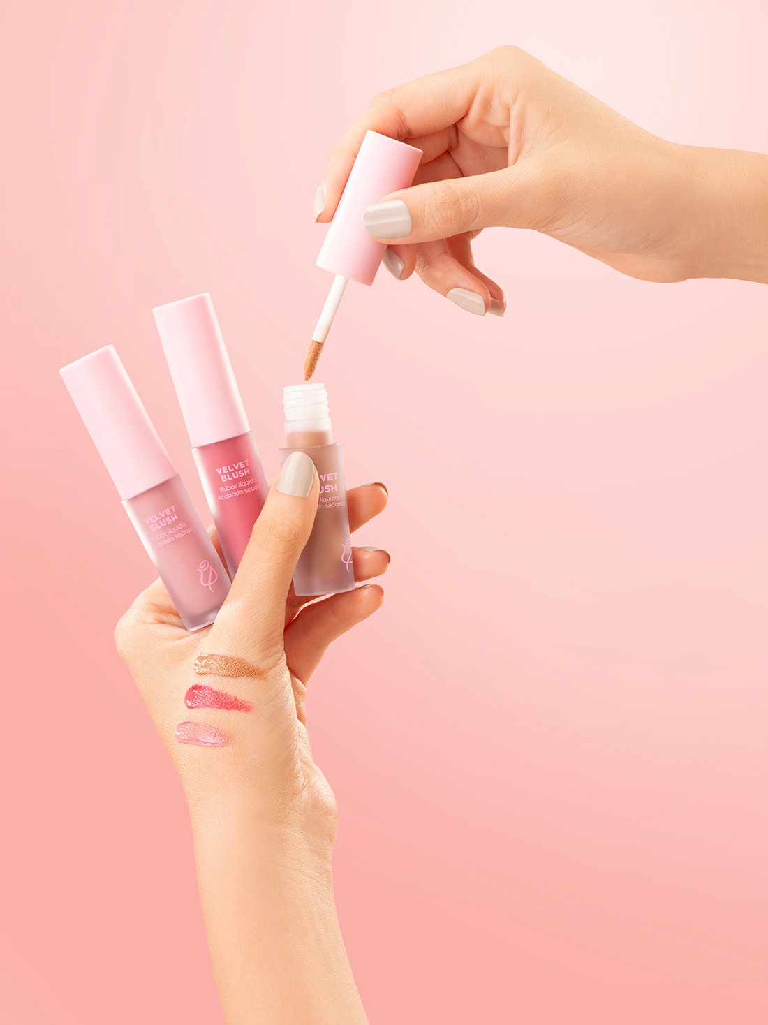 Dale vida y frescura a tus mejillas con nuestro velvet blush. Su textura fluida se funde perfectamente con tu piel, proporcionando un rubor natural en segundos