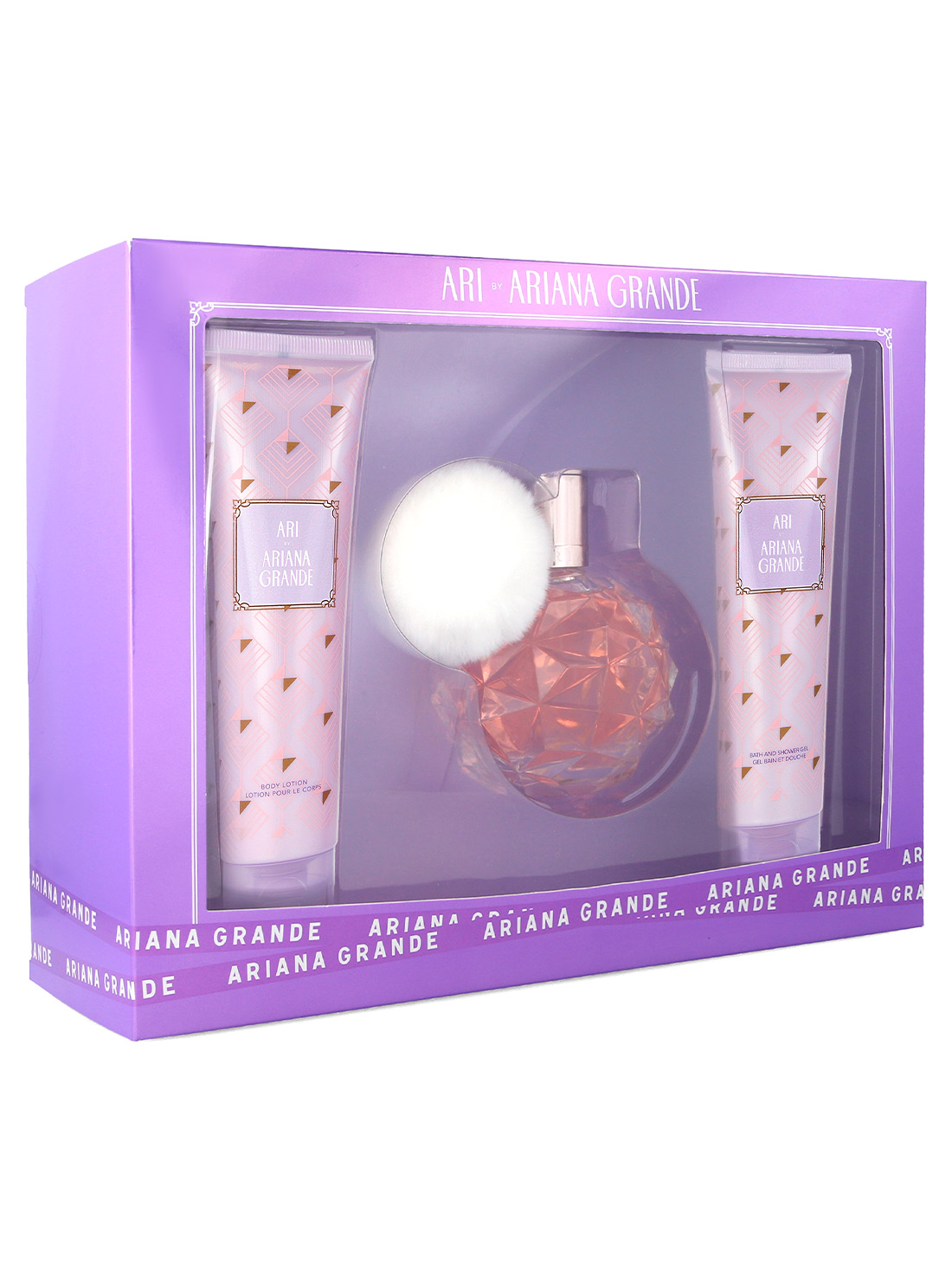 Ari by Ariana Grande es un set lleno de magia y encanto. Su aroma floral frutal te envuelve en dulzura, mientras que la body lotion y shower gel complementan tu rutina con un toque coqueto y brillante.
