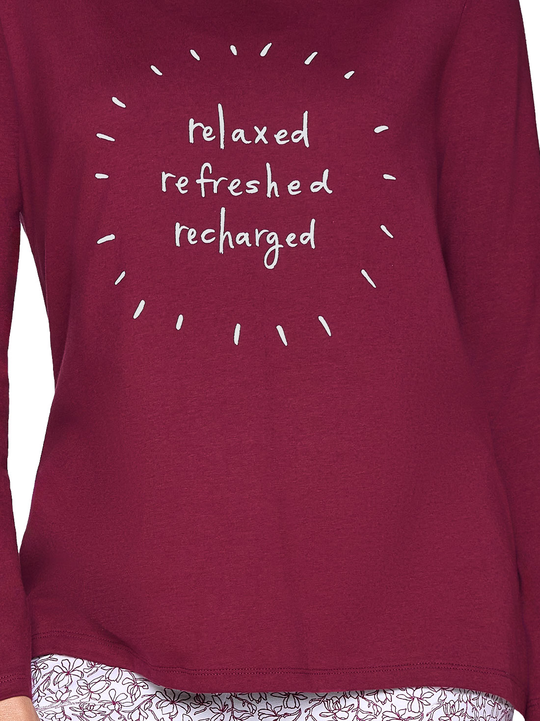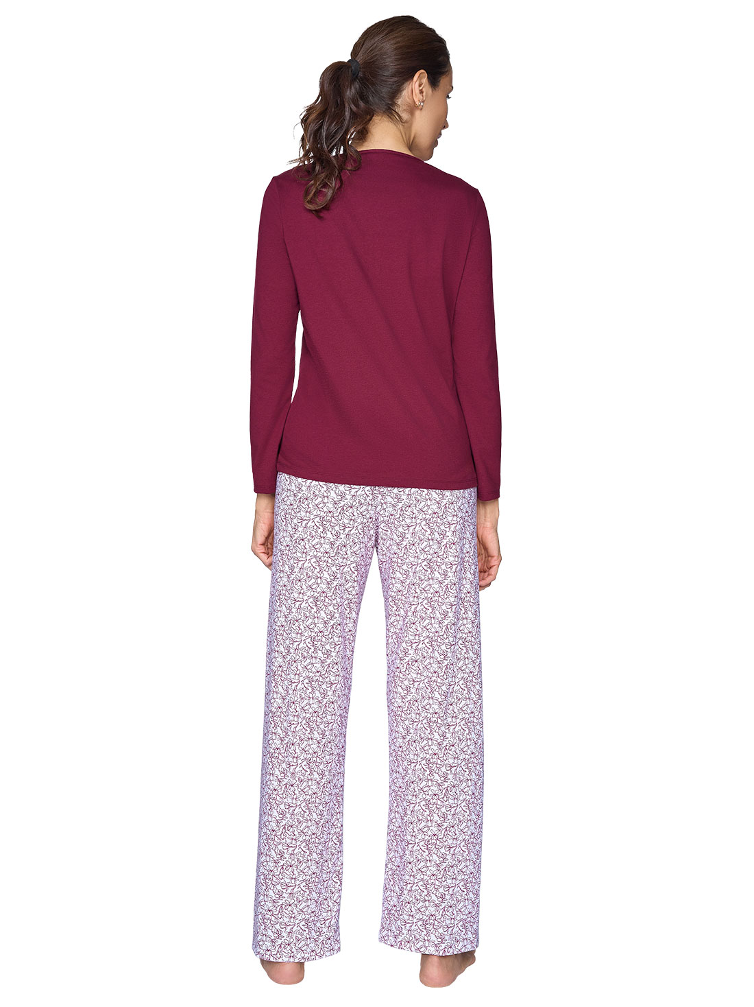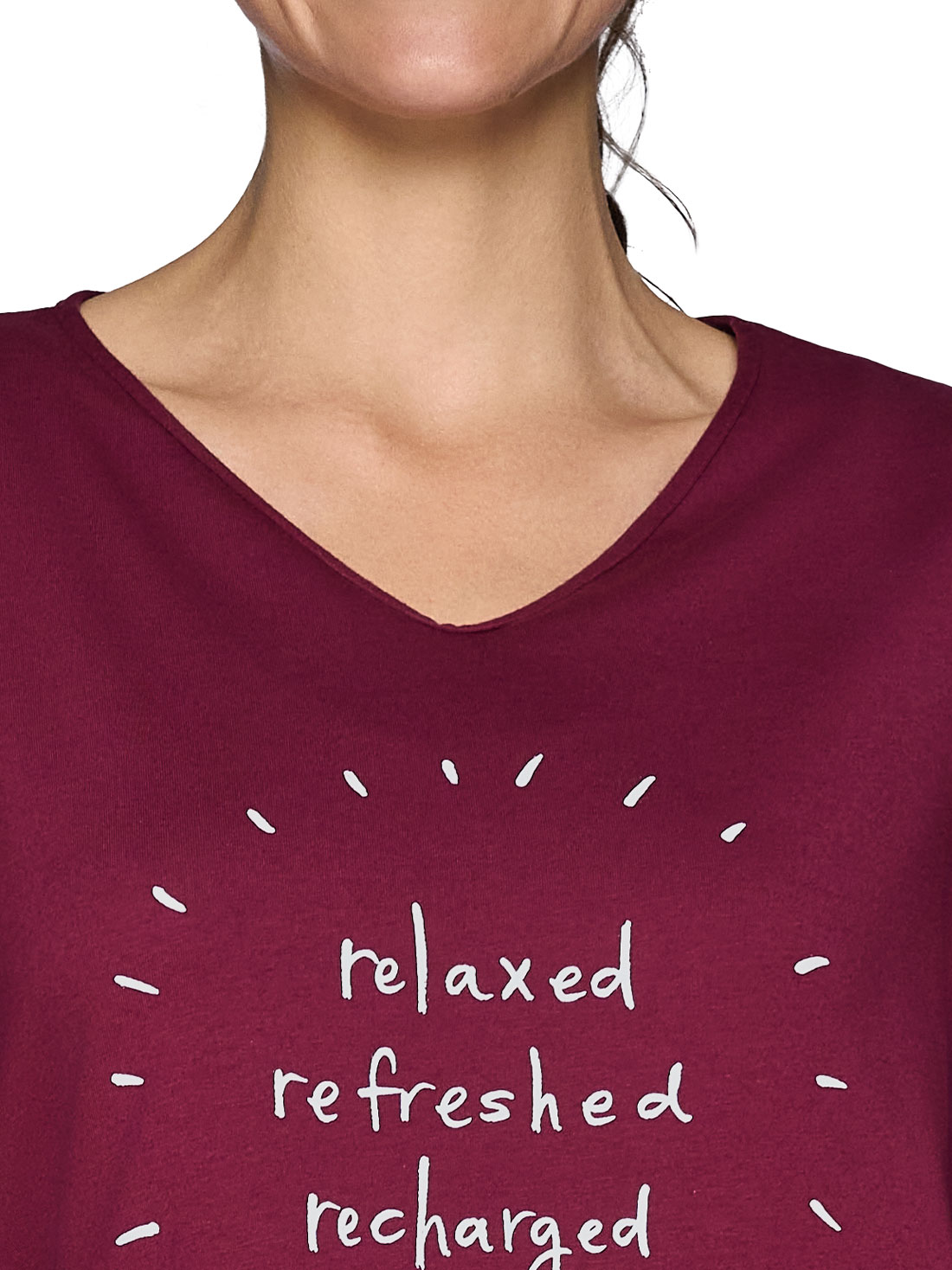 Pijama algodon mujer con escote V y serigrafía con glitter. Su silueta recta y cintura elástica garantizan comodidad y libertad de movimiento. Ideal para descansar con estilo en estas fiestas.