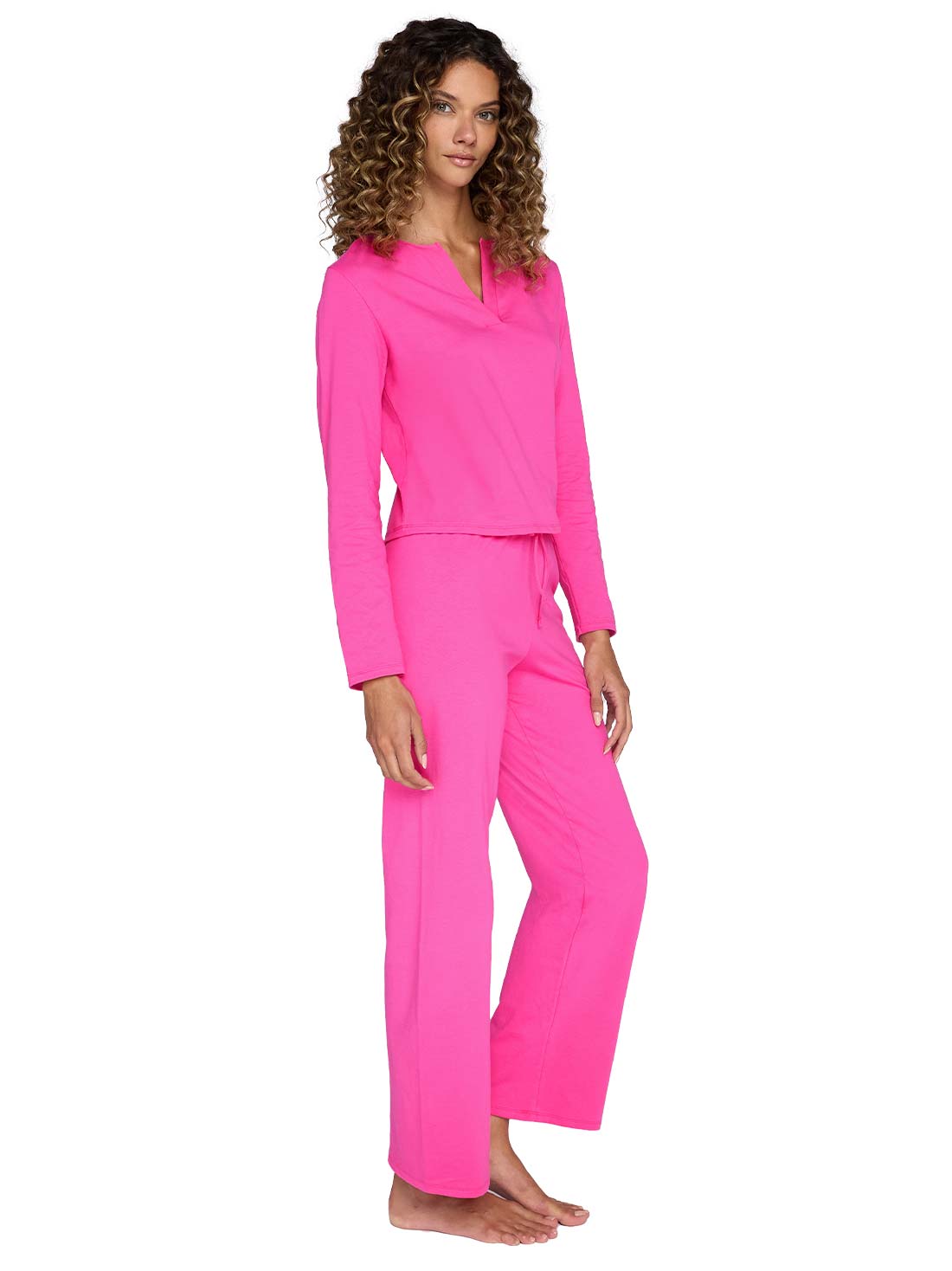 Los días fríos se disfrutan más cuando estás cómoda. Esta pijama larga tiene todo lo que necesitas para tus momentos de descanso: manga larga, detalles decorativos, una silueta que no aprieta y tela suave que se adapta a ti. Ideal para esas noches en las que solo quieres envolverte en tranquilidad.