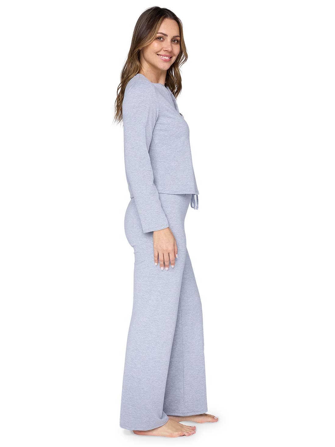 Los días fríos se disfrutan más cuando estás cómoda. Esta pijama larga tiene todo lo que necesitas para tus momentos de descanso: manga larga, detalles decorativos, una silueta que no aprieta y tela suave que se adapta a ti. Ideal para esas noches en las que solo quieres envolverte en tranquilidad.