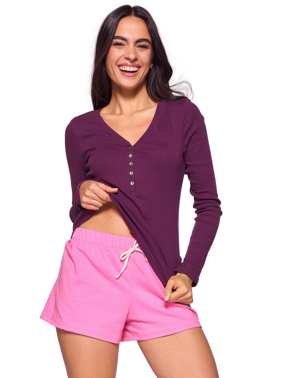 Disfruta de la máxima comodidad con nuestro pack de 2 shorts de descanso. Su composición extra suave y ligera te mantendrá fresca en tus días de relax.