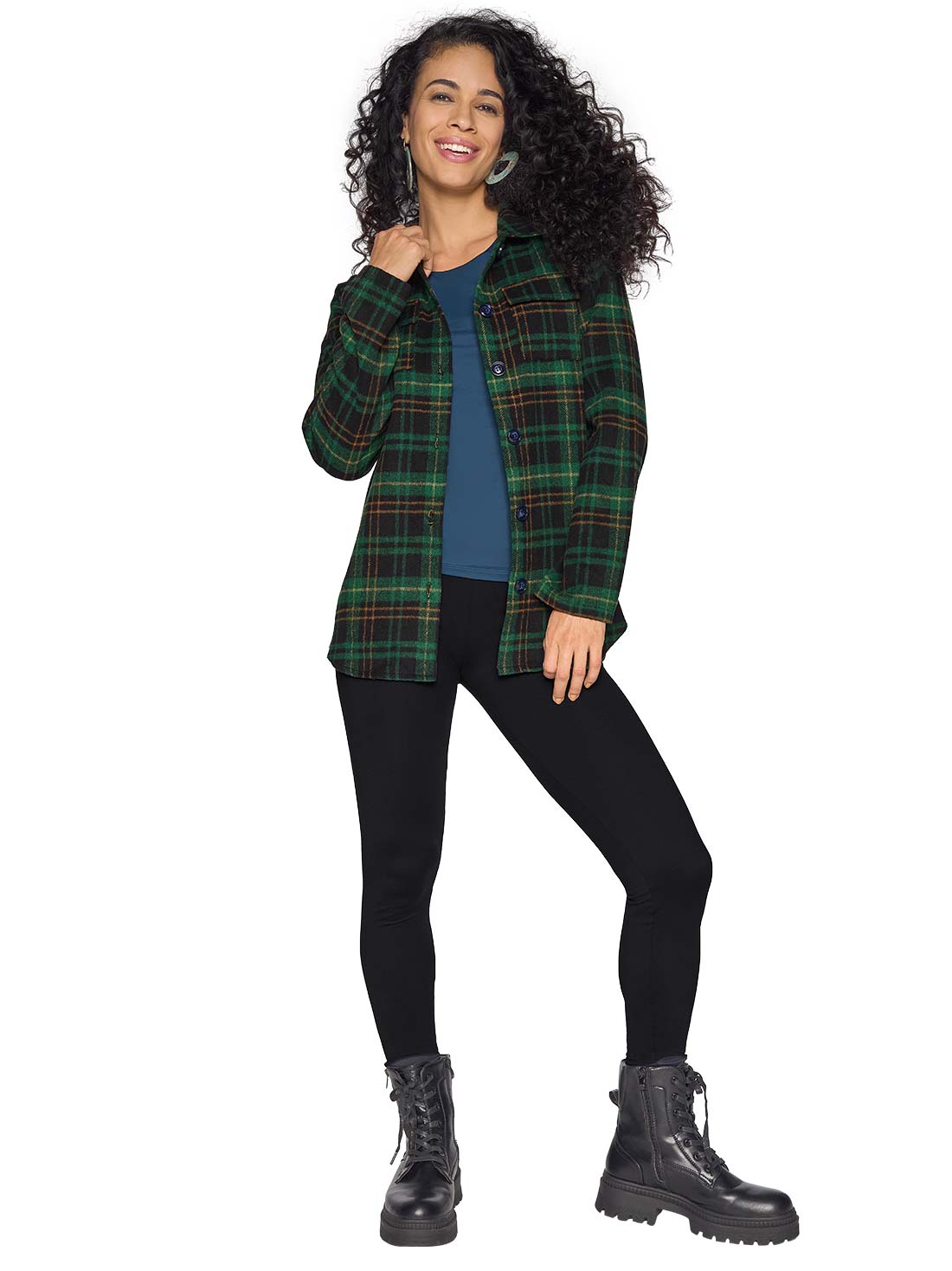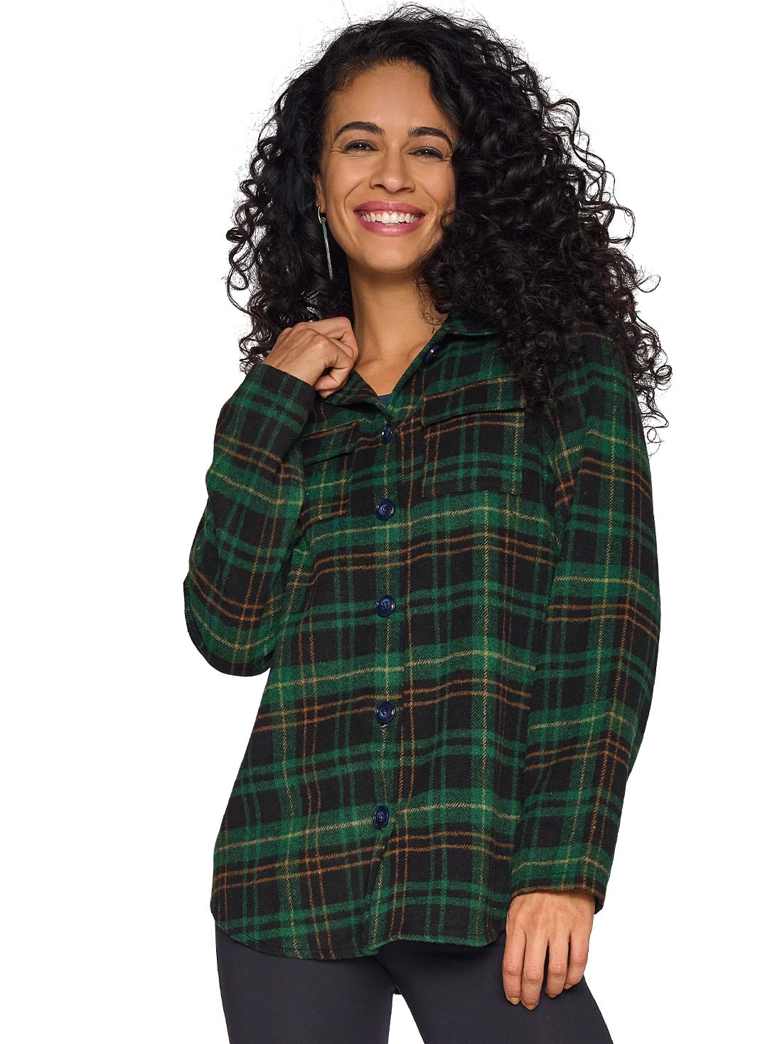 Renueva tu clóset con una camisa de cuadros que combina estilo y funcionalidad. Su corte asimétrico y cuello camisero le dan un aire moderno, mientras los bolsillos y botones al frente la hacen práctica. Su silueta recta es perfecta para looks relajados.