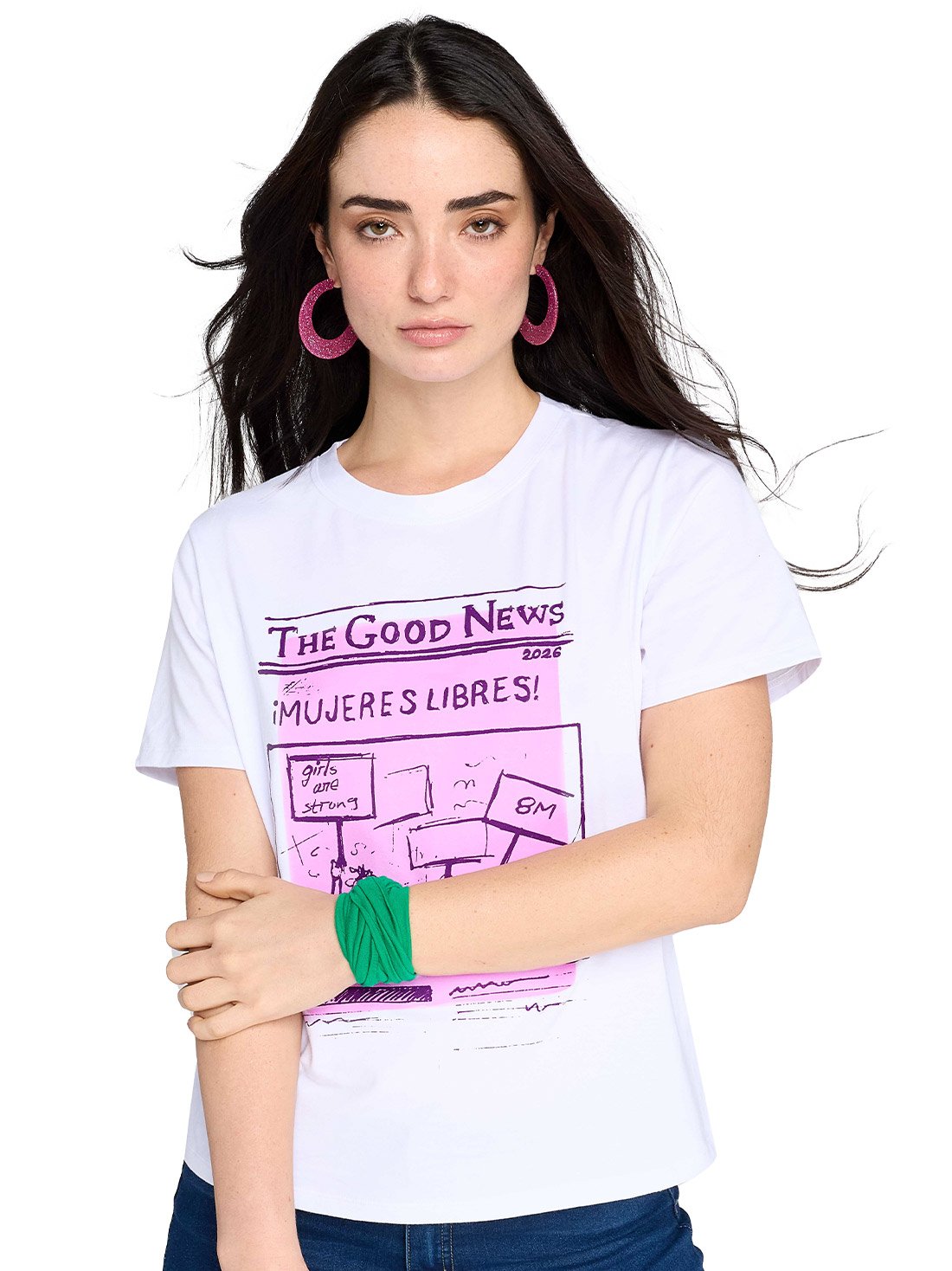 Esta playera de algodón cuello redondo es perfecta para acompañarte todos los días. Con silueta recta, largo a la cadera y serigrafía al frente le dan un toque moderno. Su tejido suave te permite moverte con libertad.