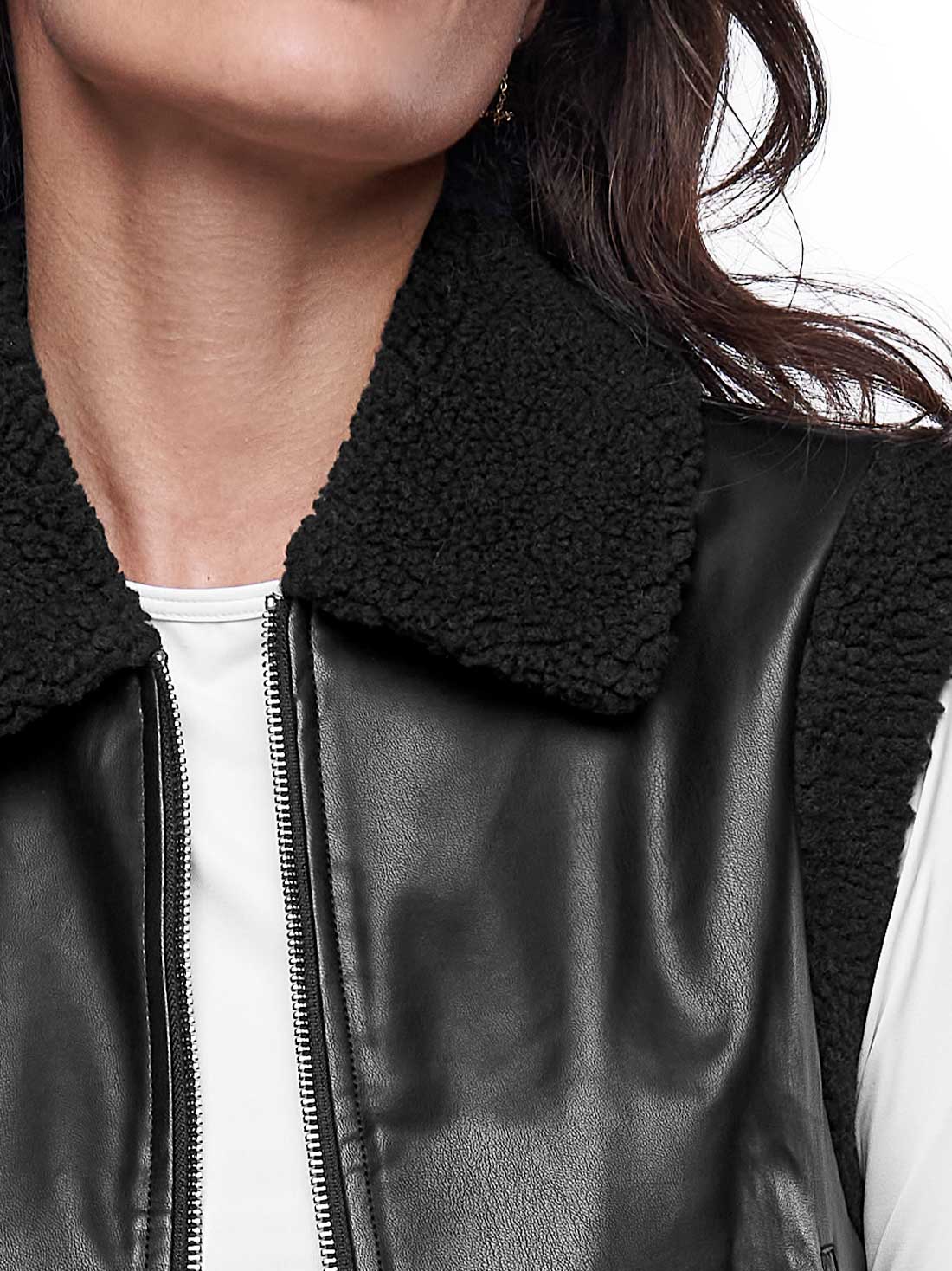 Este chaleco de piel vaquero es ese toque western moderno que transforma tu clóset. Con cierre metálico, bolsillos funcionales y forro interno, su largo a la cintura lo hace perfecto para usar sobre blusas o vestidos. ¡Combínalo y crea tu estilo con actitud!