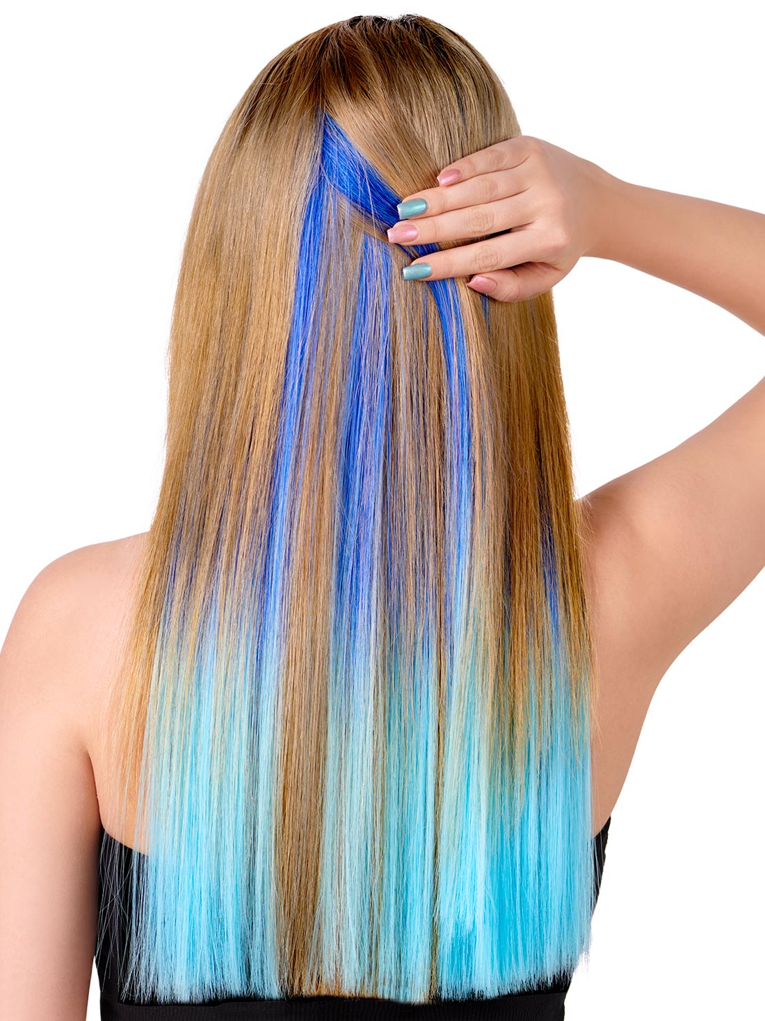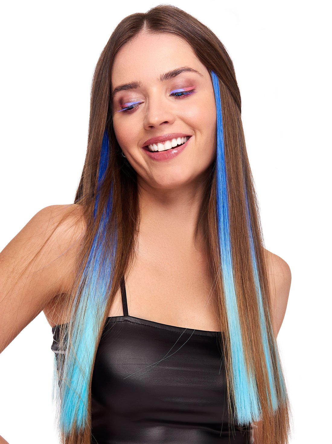 - Extensiones en tonos fantasía para lucir un look diferente en minutos, puedes peinarlas, plancharlas o recortarlas de acuerdo a tu look