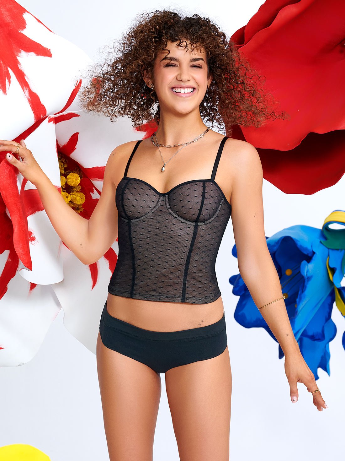 Top estilo corsette con copa con varilla y sin relleno para un soporte natural. Los tirantes ajustables y el cierre de gancho en la espalda aseguran un ajuste perfecto, mientras que la silueta ajustada resalta tu figura con sofisticación.