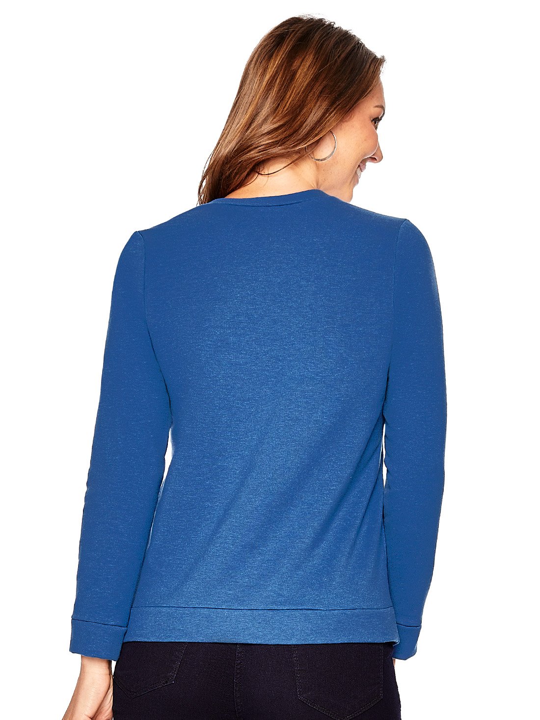 Esta sudadera de manga larga será tu favorita para esta temporada, mantente calientita gracias a su tela afelpada. Su silueta recta con escote redondo y estampado al frente ayudarán a estar cómoda y a la moda todo el tiempo.