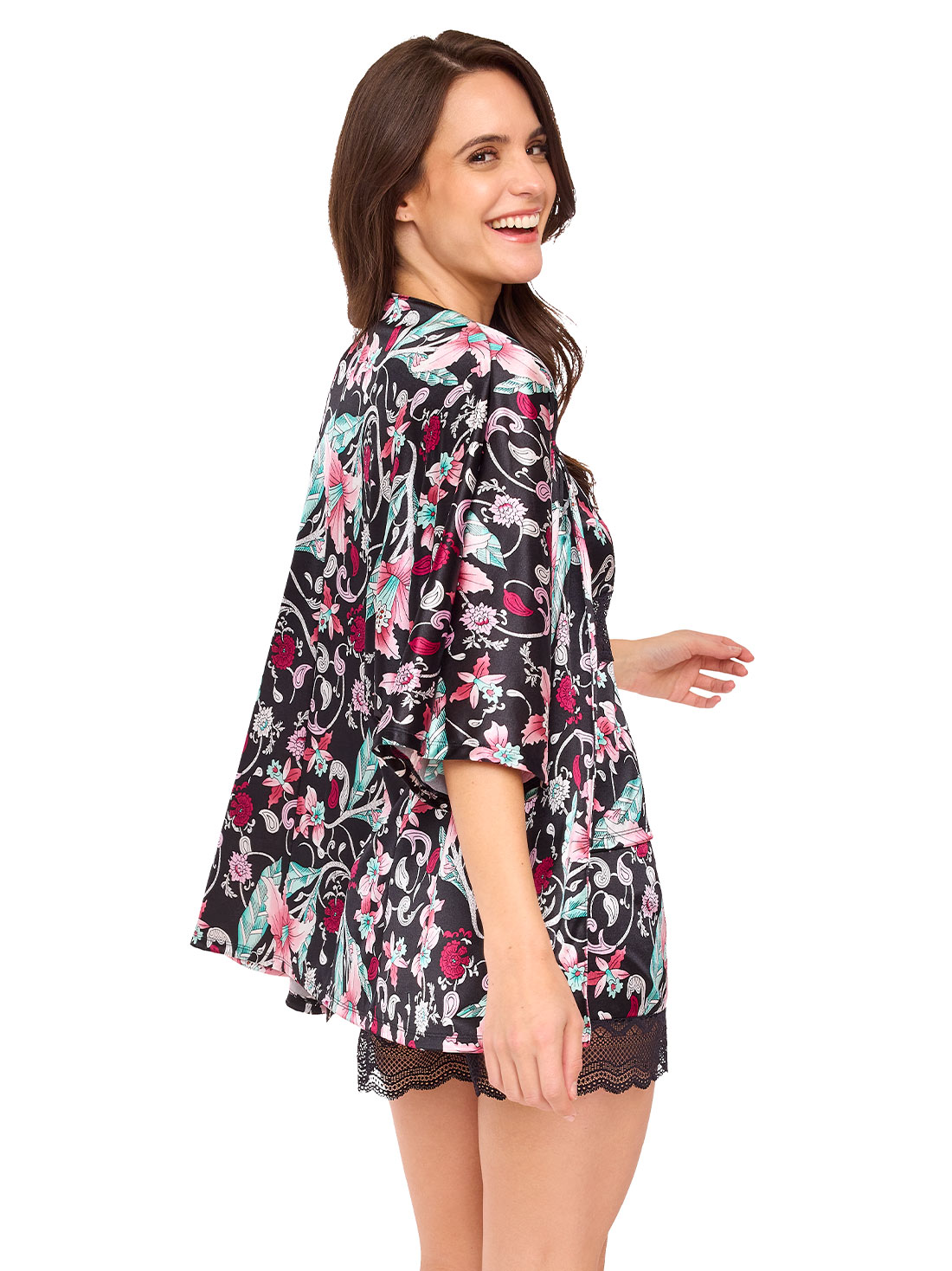 Consiente a mamá con esta bata satinada de diseño floral. Con hombros caídos y mangas cómodas, es ideal para relajarse. Aprovecha la promoción especial y haz de su rutina diaria un momento para consentirse.