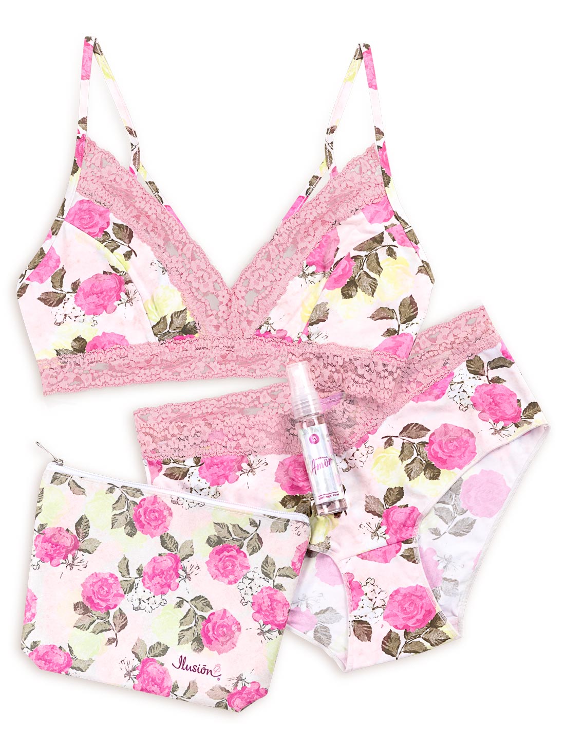 Completa tu estilo con nuestro paquete. Incluye bralette y hipster para un ajuste perfecto. Además, una cosmetiquera y body mist. Sin pad ni varilla para la máxima comodidad y libertad de movimiento.