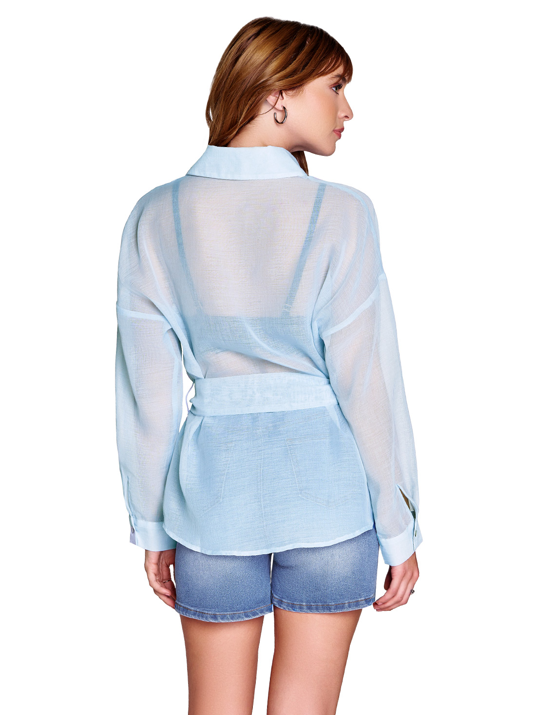 Una blusa versátil y práctica. Con bolsillos funcionales en el pecho y un cinturón removible, es perfecta para destacar tu estilo mientras mantienes la funcionalidad en mente.