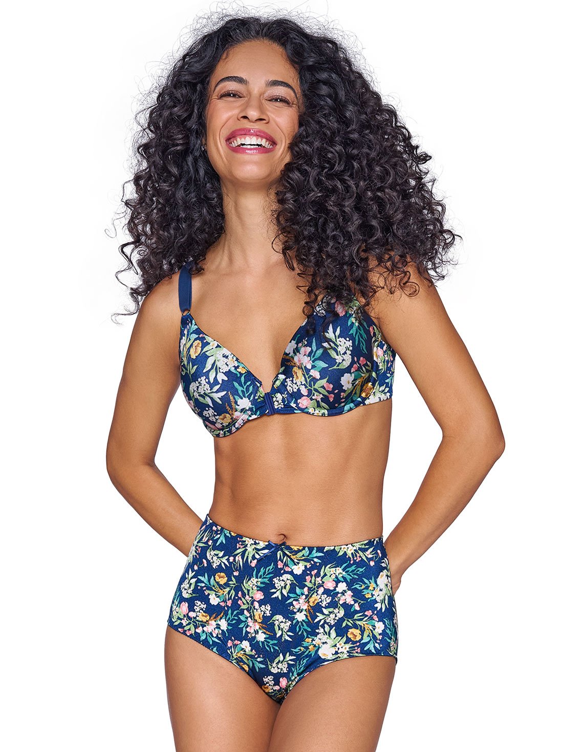 - Tela brillante estampada: 82% Poliamida, 18% Elastano