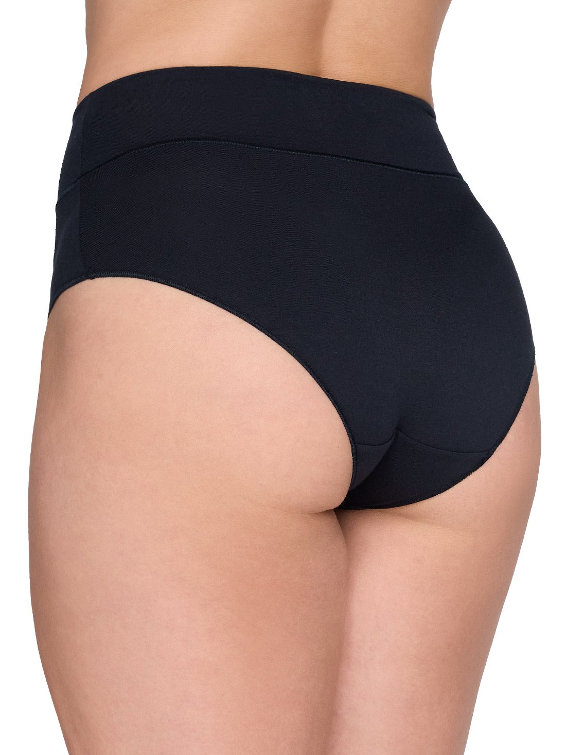Panty cintura alta diseñada para brindar comodidad y libertad de movimiento. Con doble tela en cintura para control de abdomen, puente de algodón y cobertura completa, es ideal para el día a día.