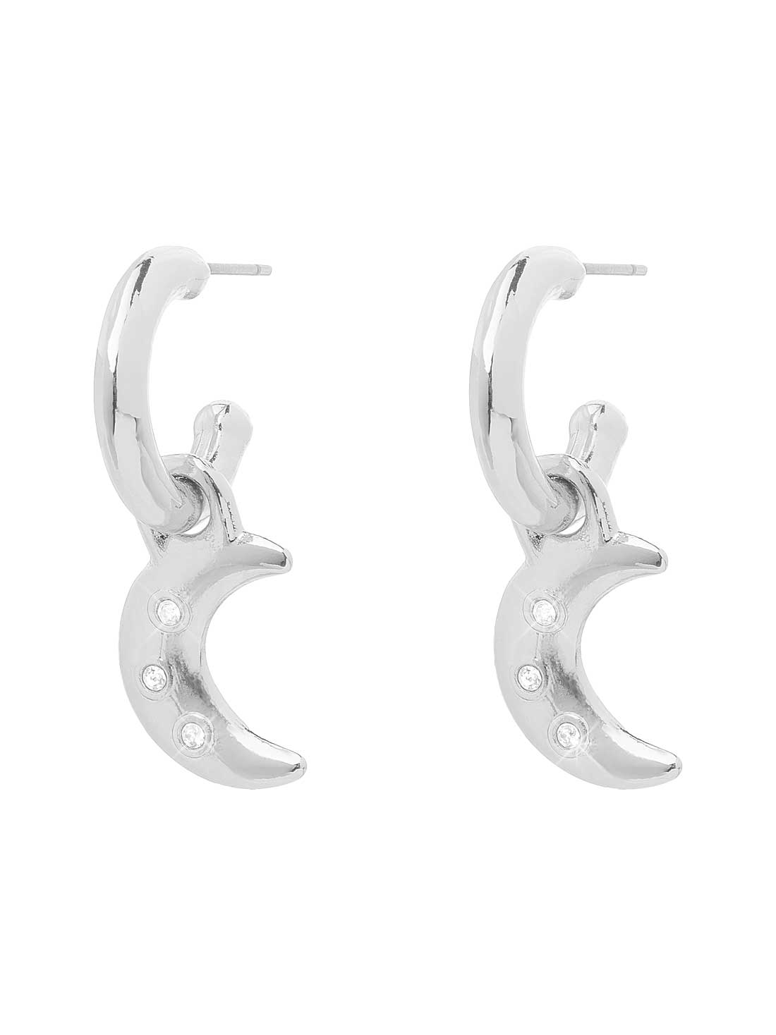 Embárcate en un viaje lunar con estos elegantes aretes. Con un diseño sutil de lunas adornadas con piedras de cristal, estas joyas te llevarán a las alturas de la moda.
