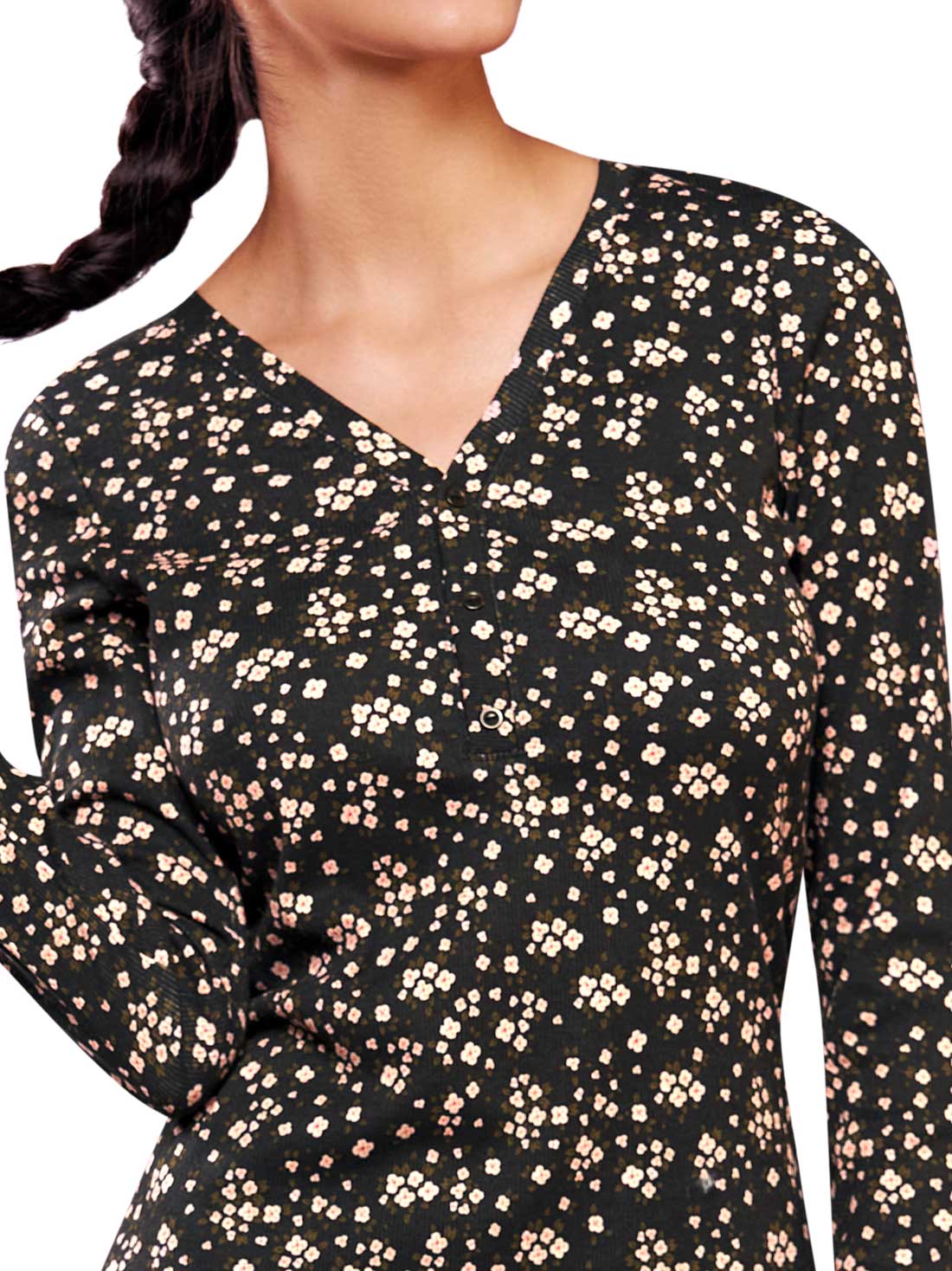 Esta pijama fresca con botones decorativos al frente combina estilo y funcionalidad. Su cintura elástica se adapta a tu figura sin apretar y el tejido tipo rib asegura transpiración y libertad de movimiento. Ideal para noches cálidas y cómodas.