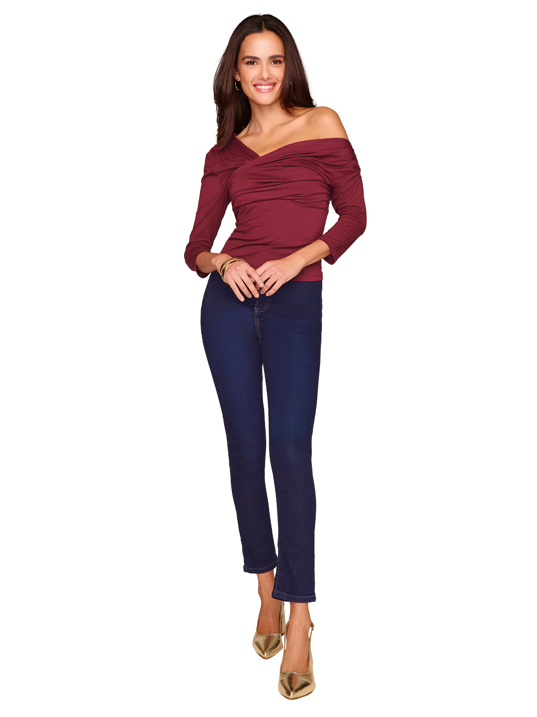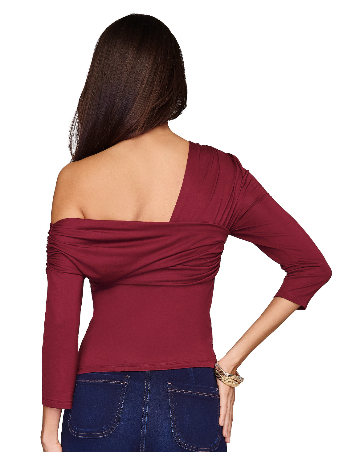 - Escote asimétrico con plisado
