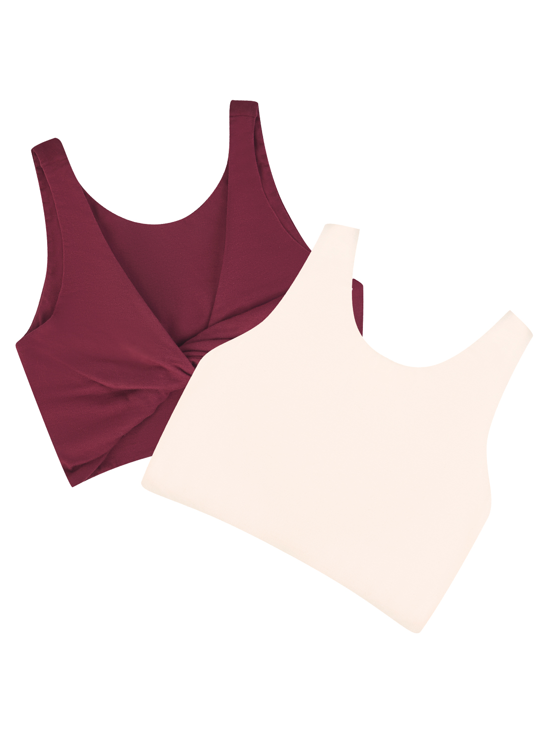 Sin varilla ni relleno, estos tops ofrecen discreción y confort con su doble tela. Con un detalle de torcedura, son perfectos tanto como prenda interior o exterior, agregando versatilidad a tu armario.