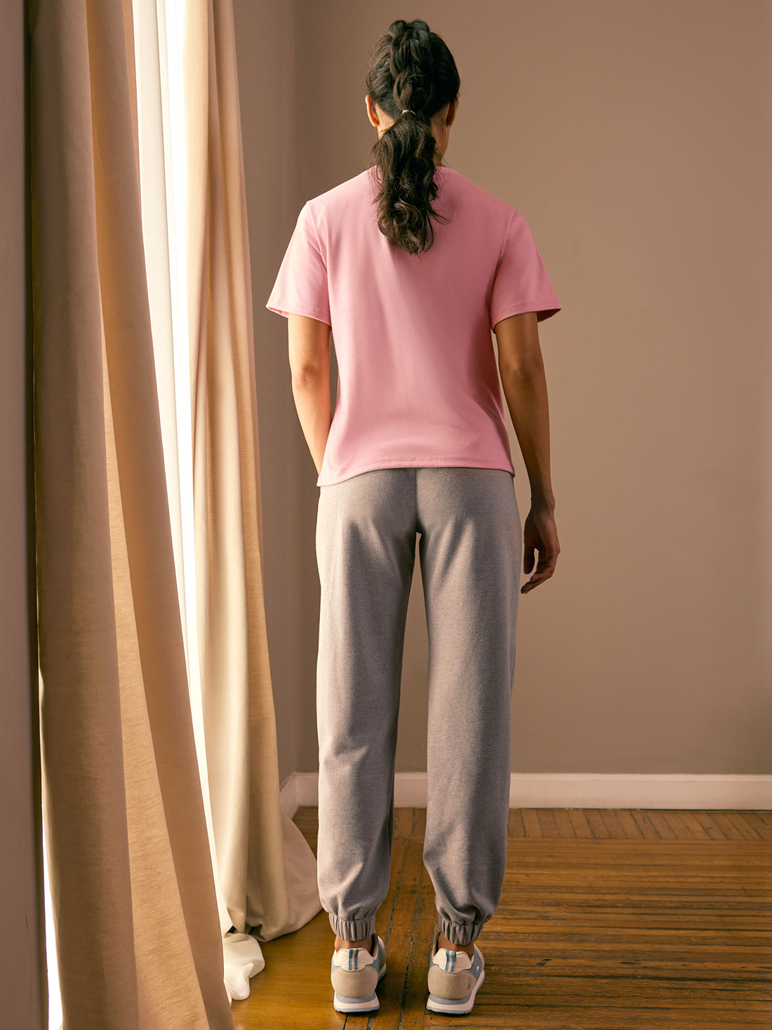 Este jogger mujer es perfecto para acompañarte en tus días de descanso o actividades ligeras. Su interior afelpado te brinda calidez, mientras que la cintura y puños elásticos aseguran un ajuste cómodo.